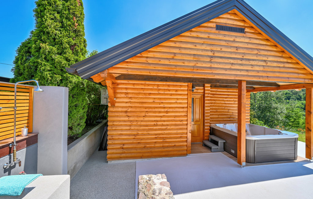 Bien-être à l'extérieur : Location de vacances disposant de chaises-longues et d'un ou plusieurs équipements tels que piscine extérieure, jacuzzi extérieur, lit à baldaquin de jardin etc...