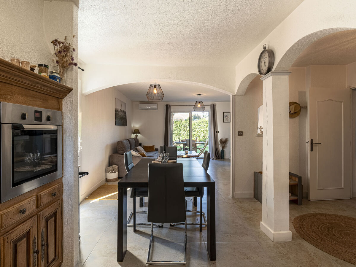 Aménagement confortable: séjour/salle à manger avec cheminée (uniquement à titre de décoration), TV (écran plat), air-conditionné.