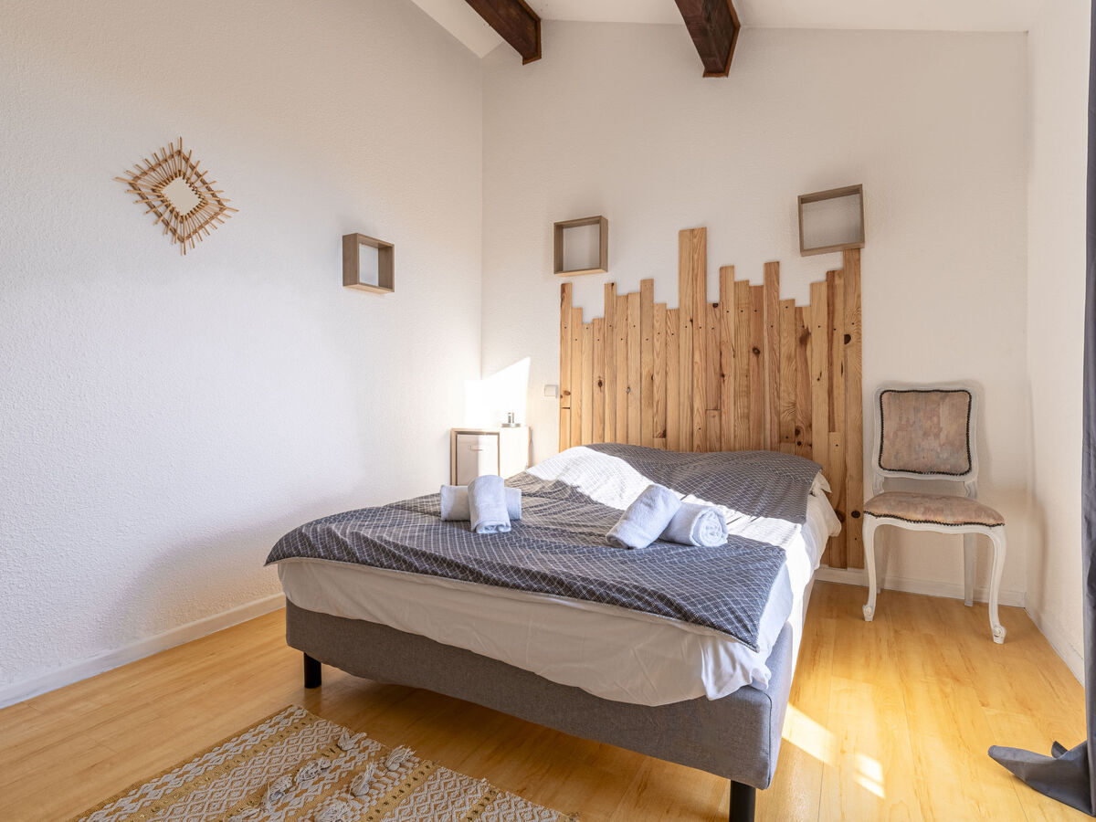 1 chambre avec 1 grand-lit (160 cm, longueur 190 cm).