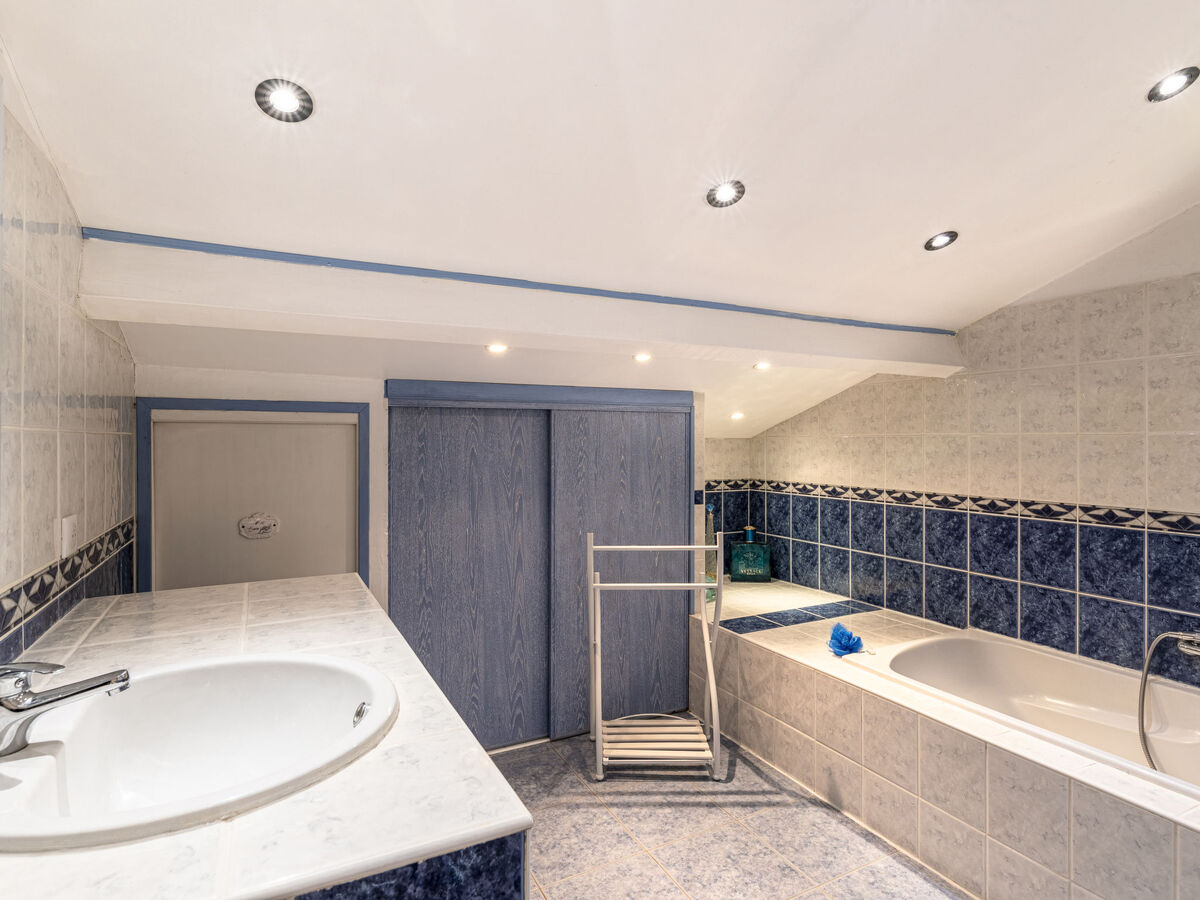 À l'étage supérieur: 1 chambre avec 1 grand-lit (160 cm, longueur 190 cm).