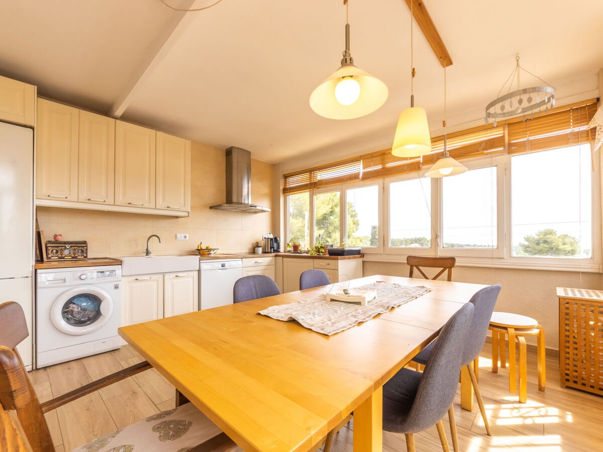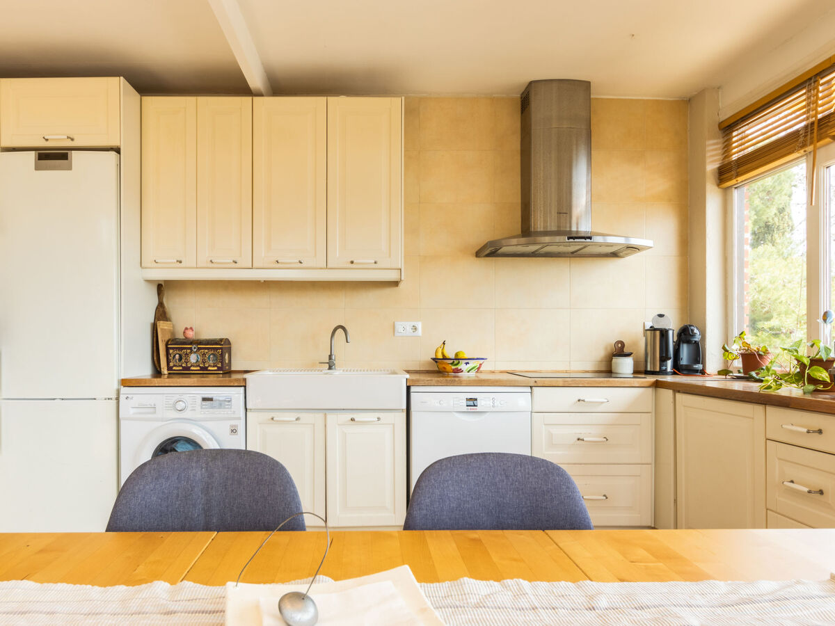 Cuisine ouverte (four, lave-vaisselle, 3 plaques vitrocéramiques, grille-pain, micro-ondes, cafetière électrique, Capsules pour machine à café (Dolce Gusto) (NON INCLUSES)).