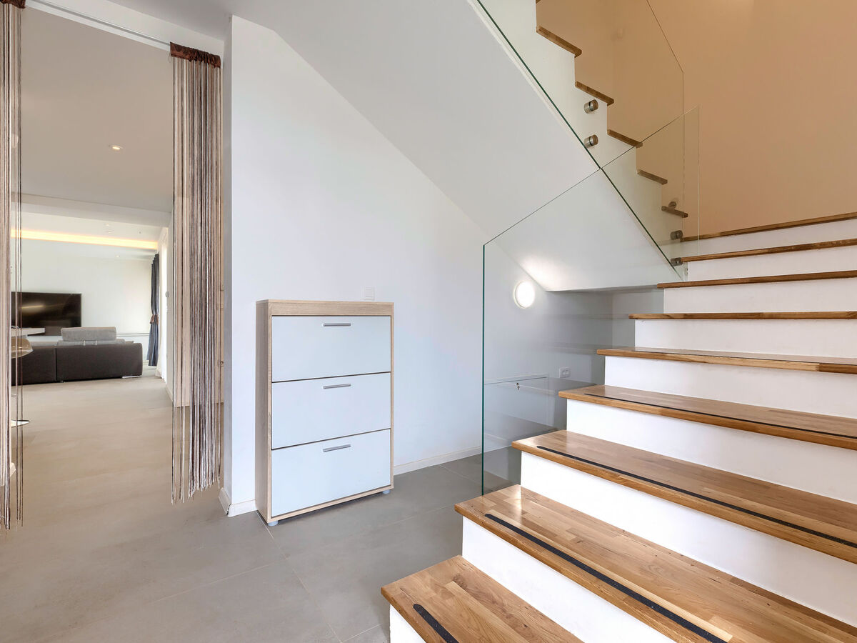 À l'étage supérieur: 1 chambre avec 1 grand-lit (160 cm, longueur 200 cm), air-conditionné.