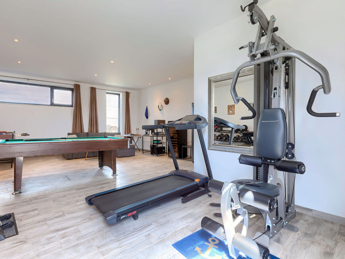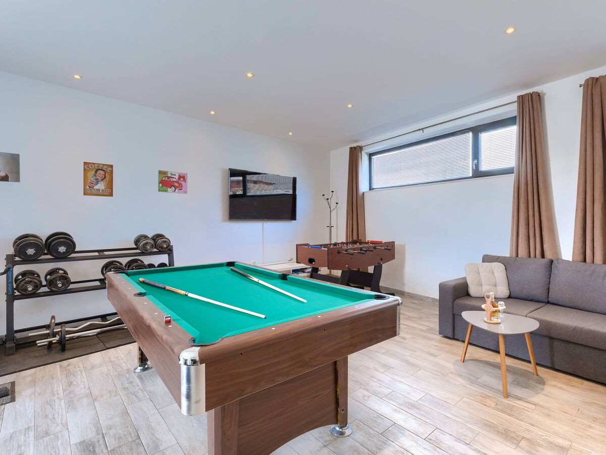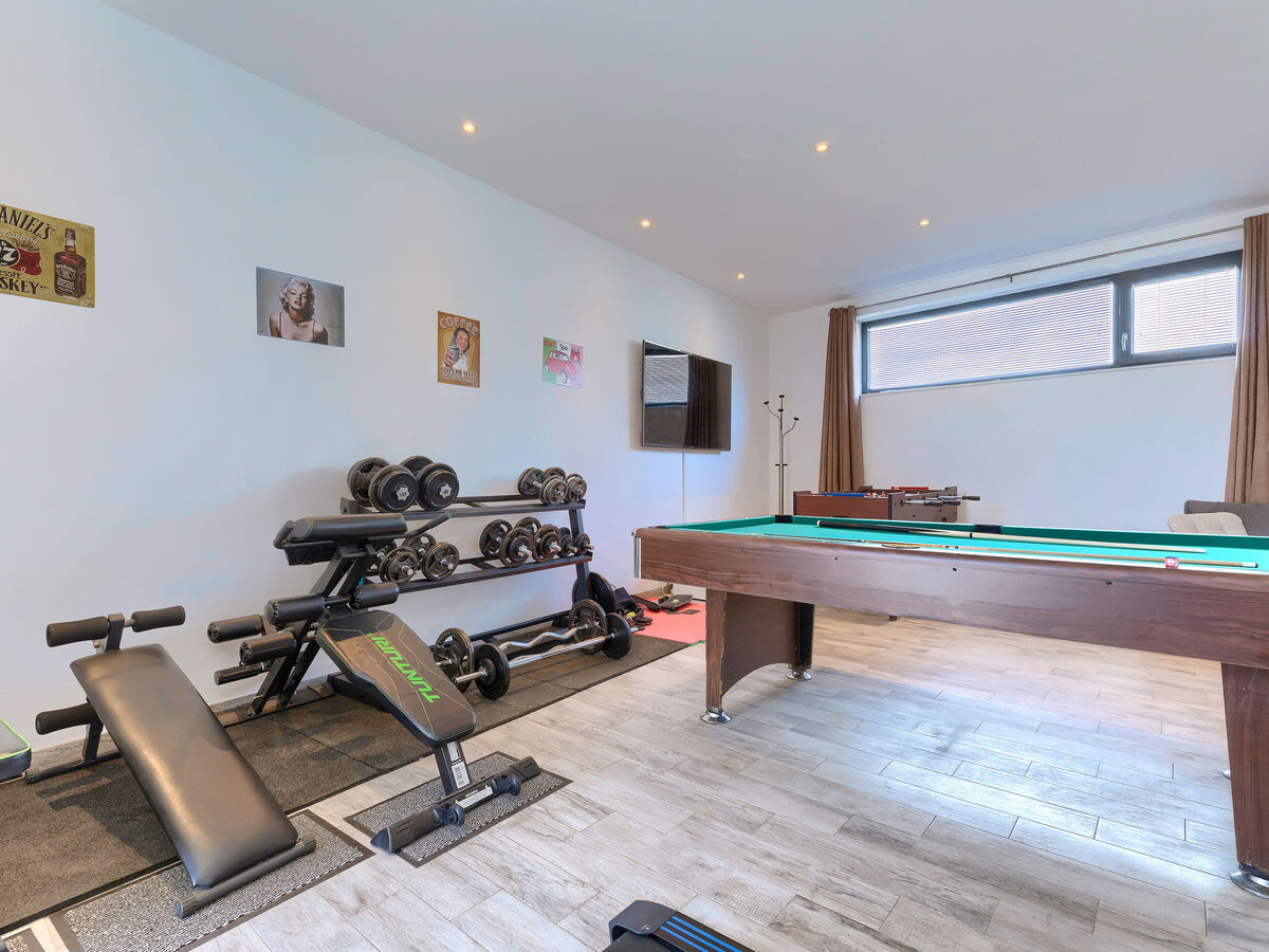 Au rez-de-chaussée - salle de divertissement de 64 m2 (billard, baby-foot, appareils de fitness, TV, système wi-fi, WC).