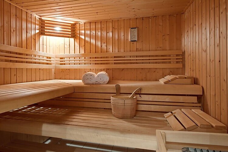 Rez-de-chaussée: (Salle de séjour(canapé-lit double, TV, table), coin cuisine(foyer, réfrigérateur, lavabo), chambre(lit double), salle de bains(douche, lavabo, WC, sèche-cheveux), climatisation) sauna, hammam, table, Bain à bulles, jardin, parking, piscine(partagé avec d'autres clients), court de tennis, vélos disponibles