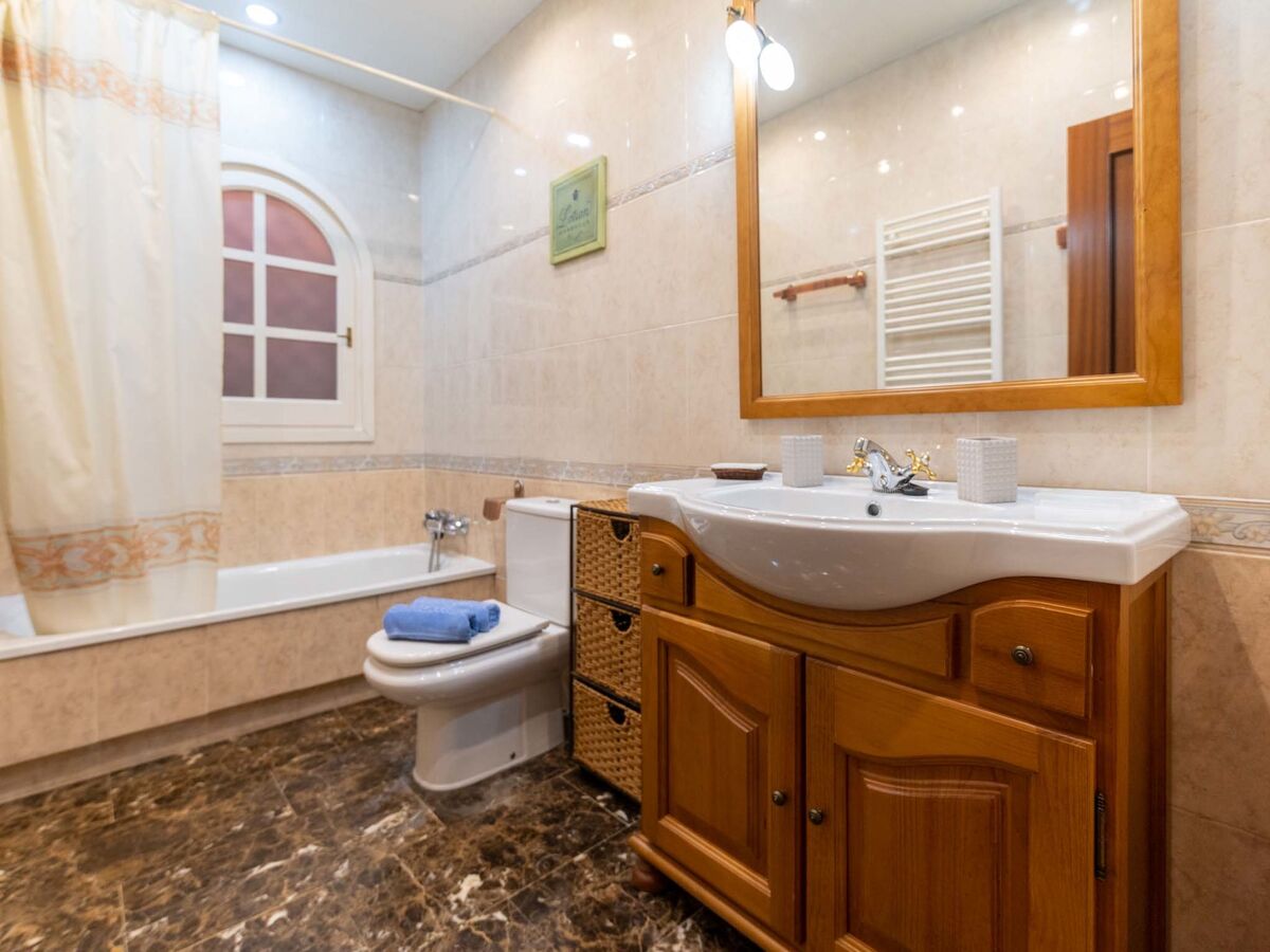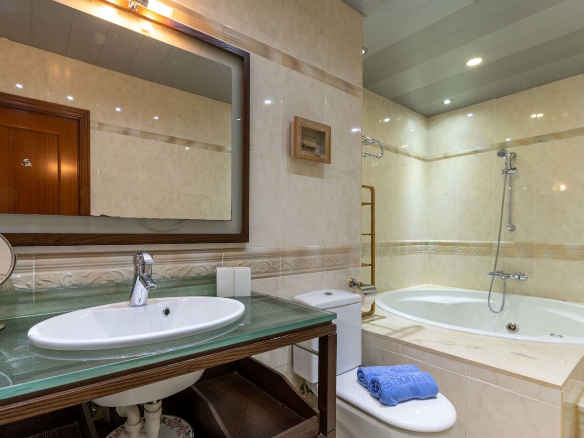 1 chambre avec 1 grand-lit (160 cm, longueur 200 cm), bain/WC, air-conditionné et chauffage à air chaud.