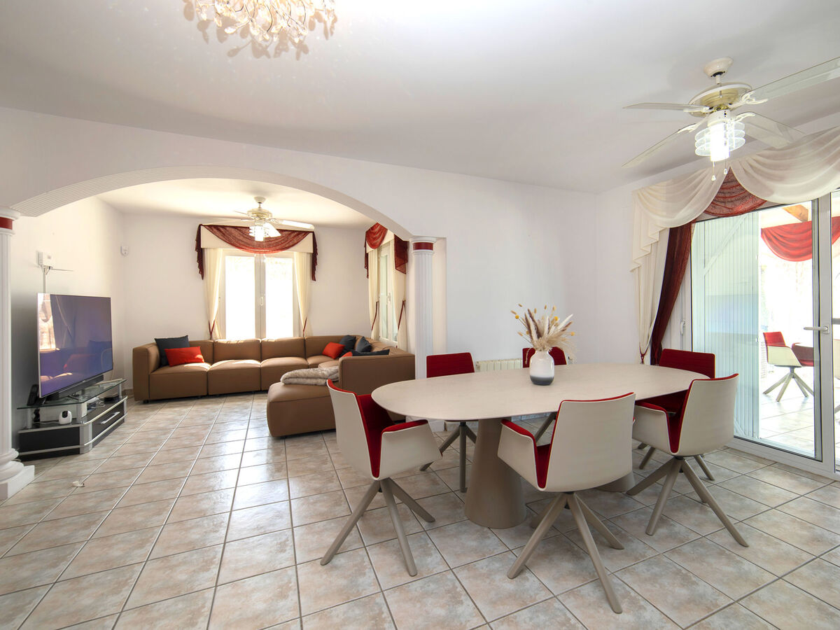 Spacieux et clair, aménagement confortable et agréable: séjour/salle à manger ouvert avec TV (satellite), Télévision numérique, air-conditionné, ventilateur et chauffage à air chaud.