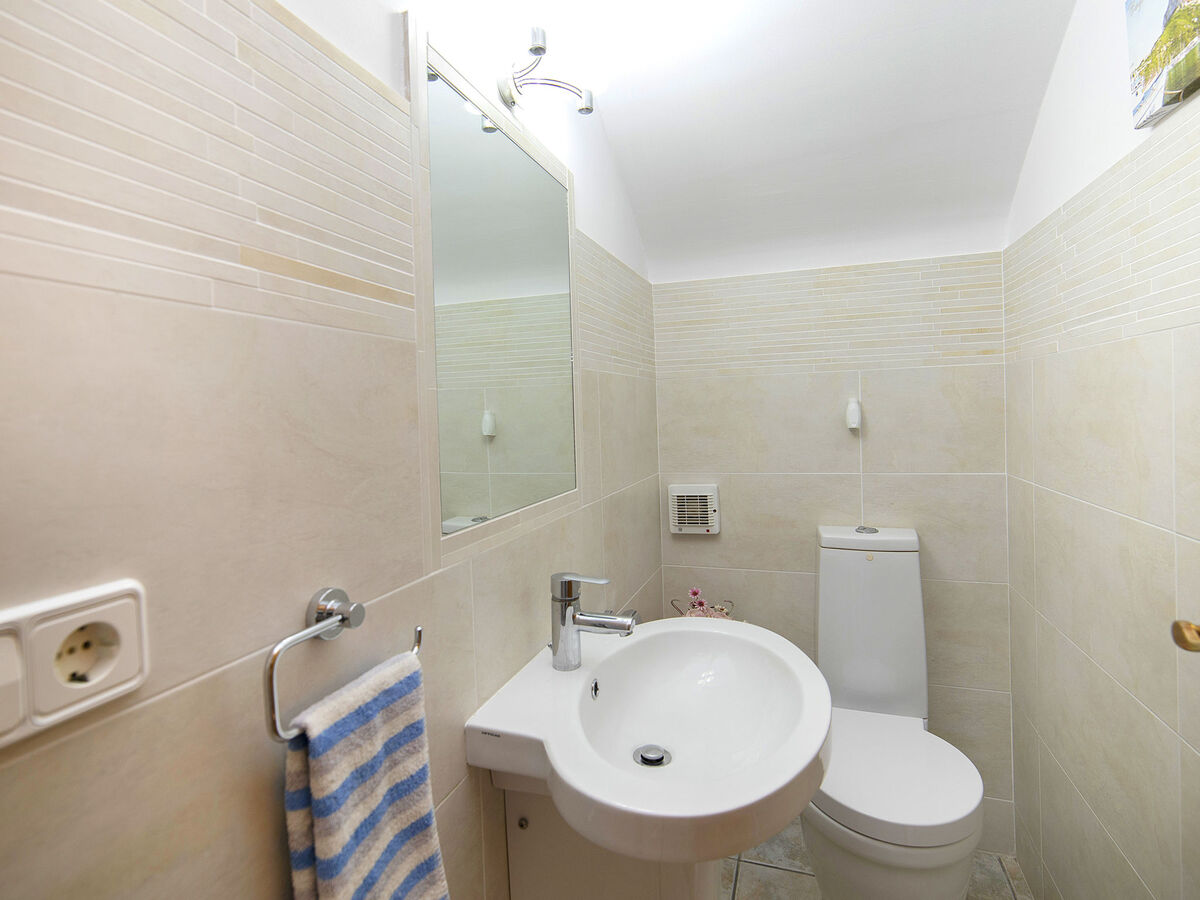 À l'étage supérieur: 1 chambre avec 1 lit double (1 x 160 cm, longueur 200 cm), bain/douche/WC, TV, air-conditionné, ventilateur et chauffage à air chaud.