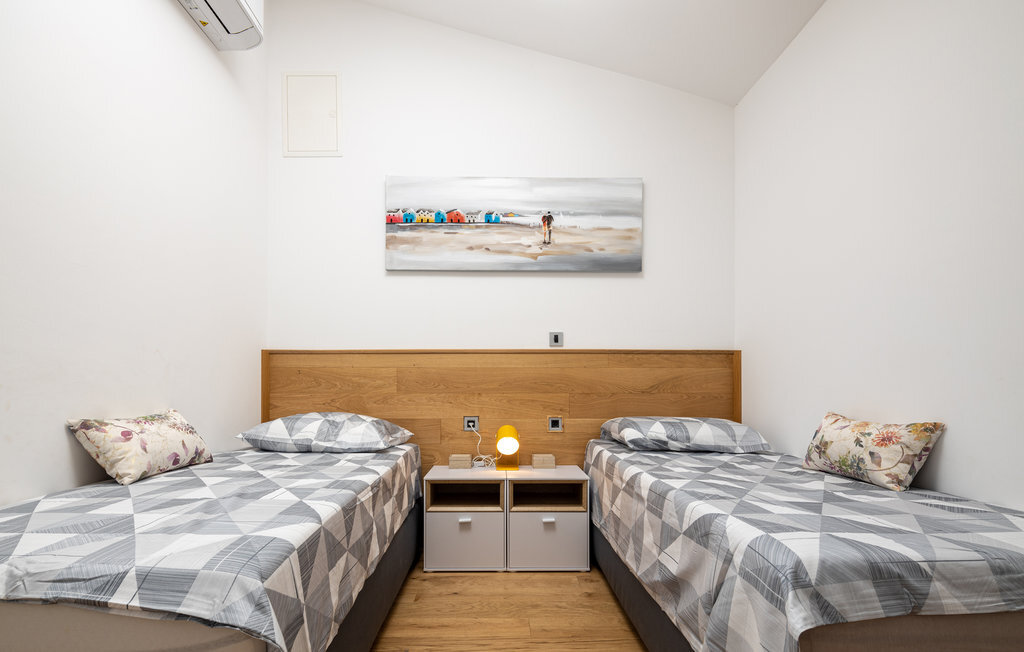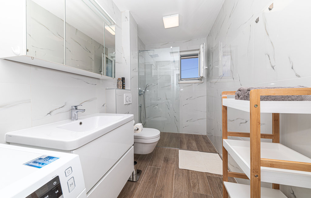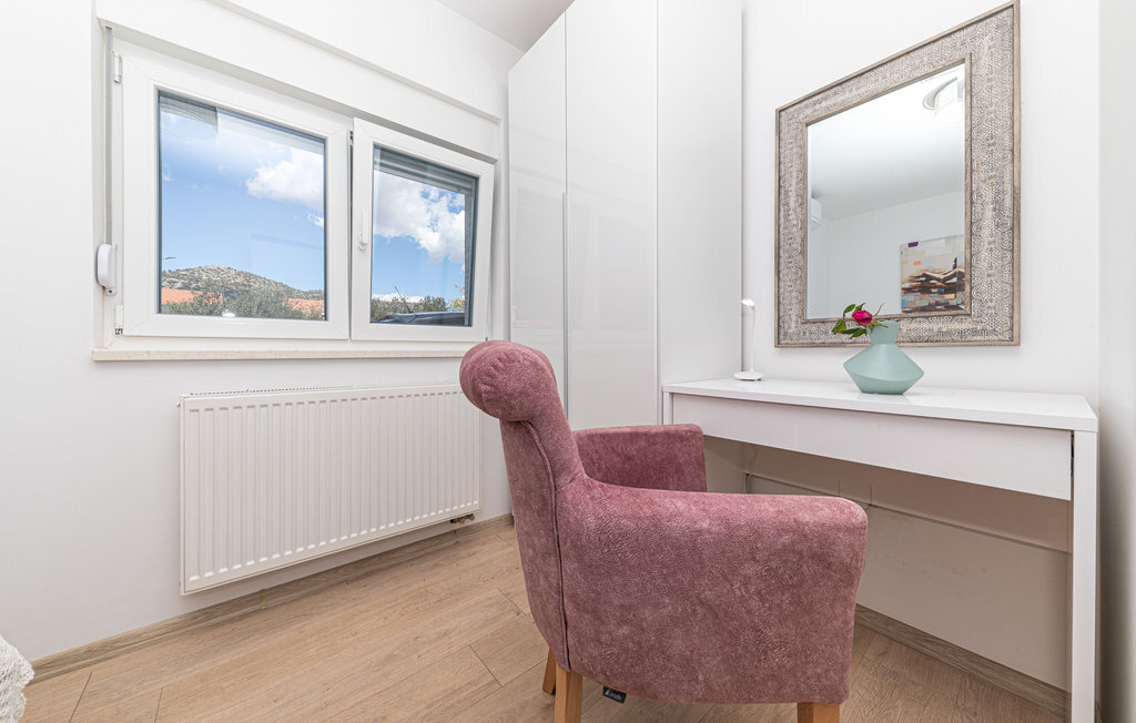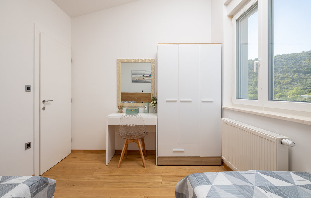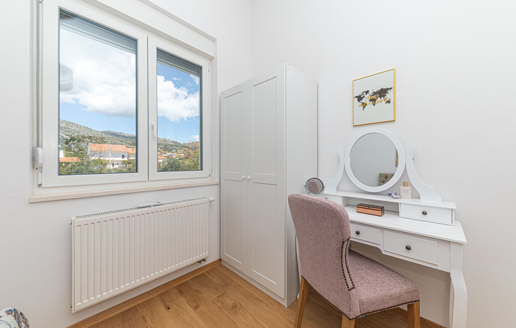 La petite ville portuaire de Marina se trouve à l'ouest de la Dalmatie centrale, à environ 7 minutes de route. La région est célèbre pour son huile d'olive, mais le vin régional et la pêche se sont également fait un nom bien au-delà des frontières de la ville. La plage de Bijeli Galeb, au nord-est, et la plage de Marina, à l'est, invitent au bronzage et à la baignade. Grâce à l'eau cristalline, les vacances au bord de l'Adriatique se prêtent parfaitement à la plongée avec tuba. Pour encore plus de culture, faites une excursion d'une journée dans la ville voisine de Trogir (17,6 km). Trogir est souvent appelée la "ville-musée", car les bâtiments historiques s'y succèdent. L'ensemble de la vieille ville a été classé au patrimoine mondial de l'UNESCO. Le centre culturel de Trogir est la place Jean-Paul II avec de nombreux monuments célèbres.