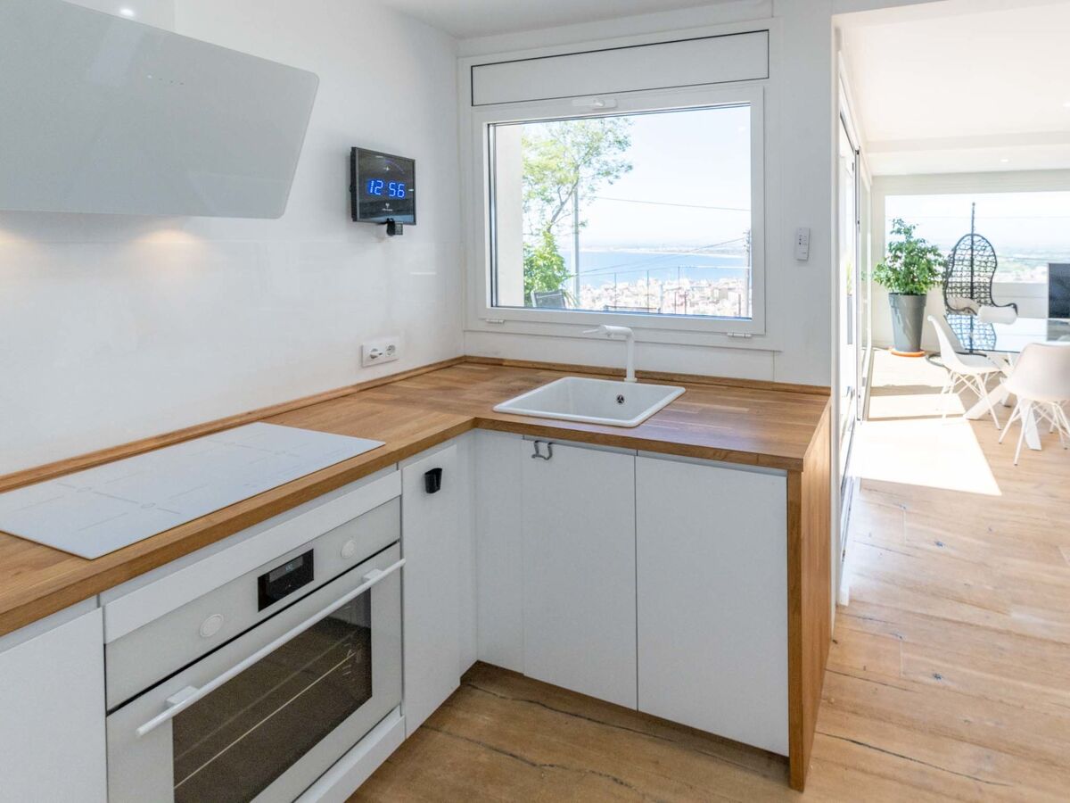 Cuisine ouverte (four, lave-vaisselle, 4 plaques à induction, grille-pain, bouilloire électrique, micro-ondes, congélateur, cafetière électrique).