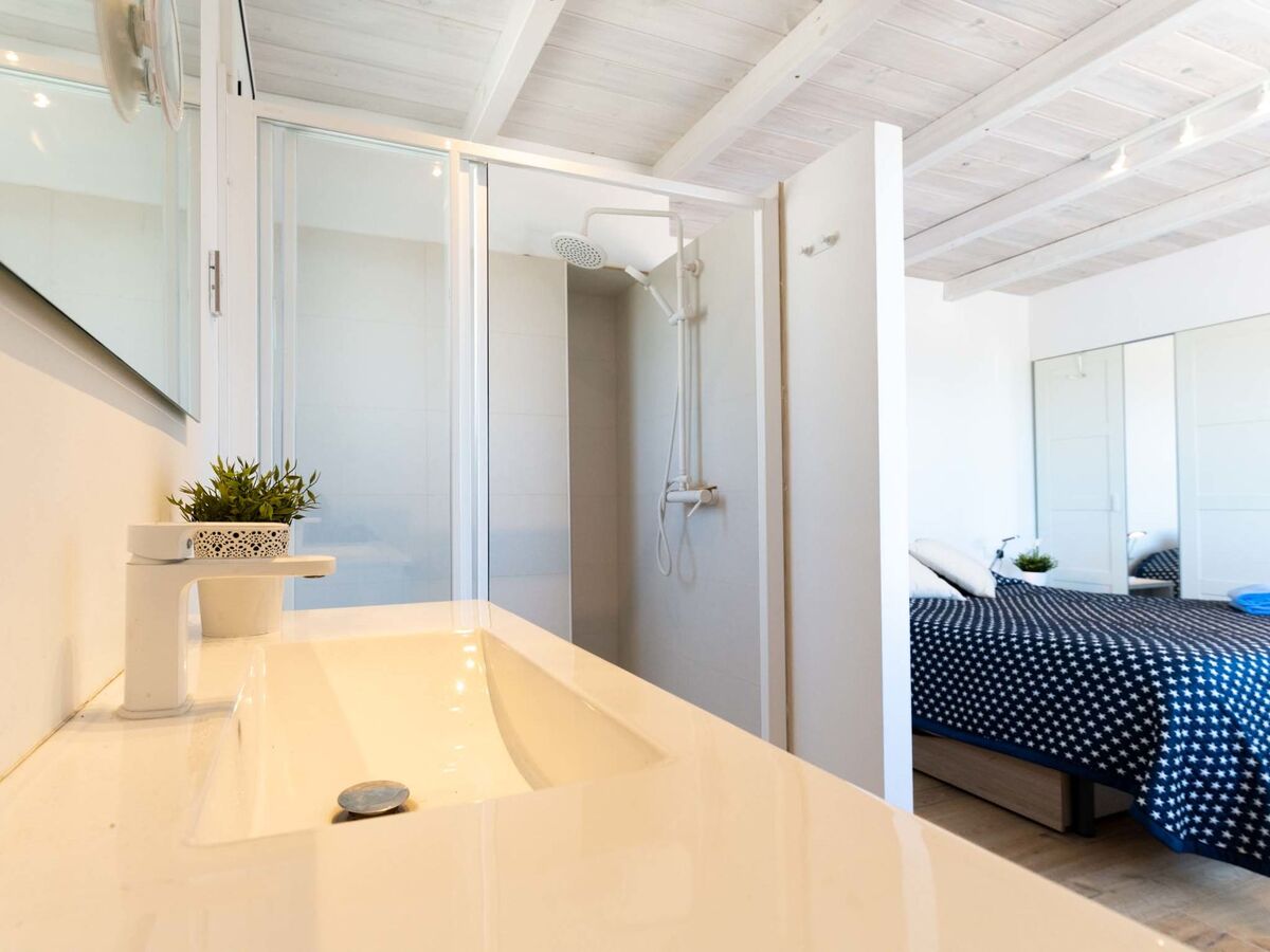 1 chambre avec 1 grand-lit (160 cm, longueur 190 cm), douche/WC, air-conditionné et chauffage à air chaud.