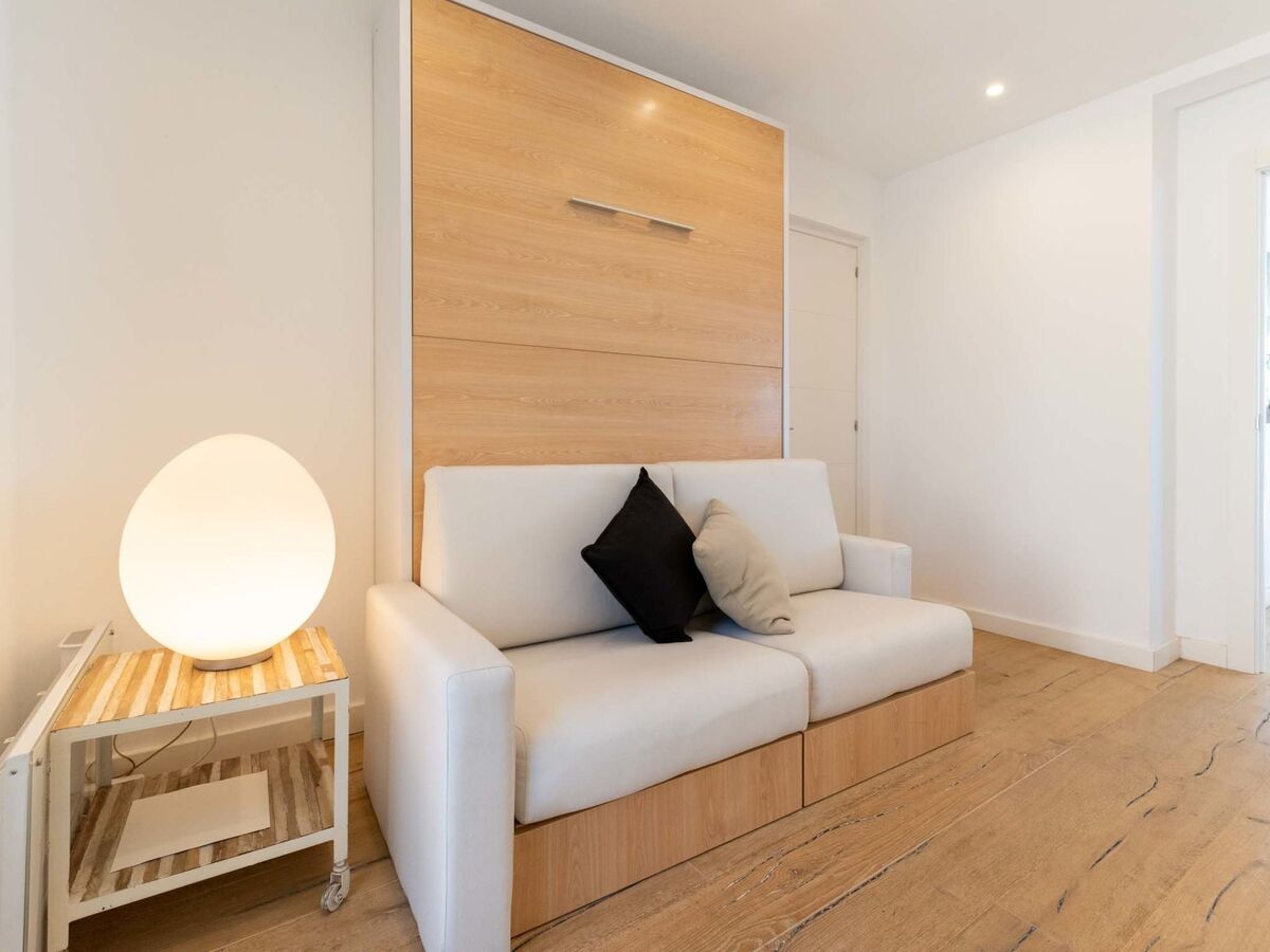 1 chambre ouverte avec 1 grand-lit rabattable (140 cm, longueur 190 cm).