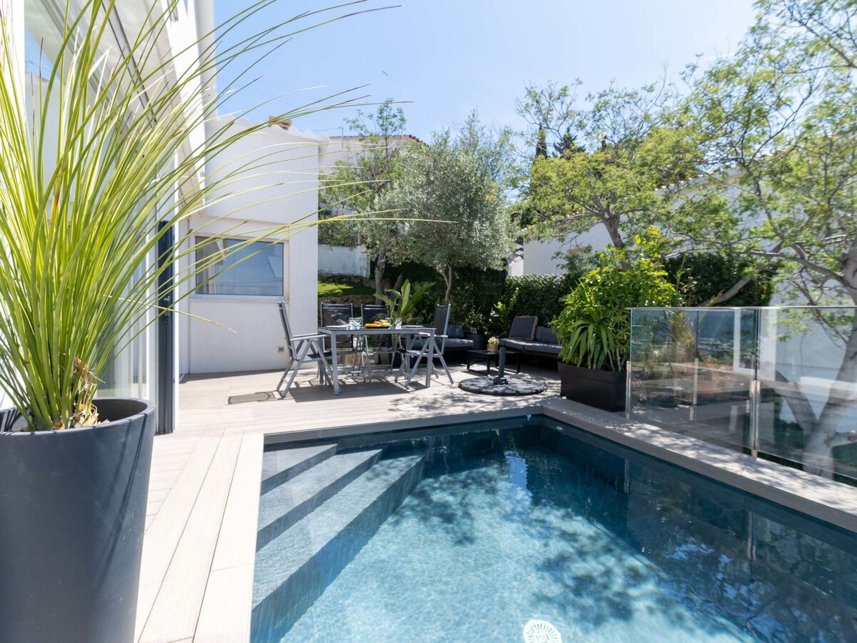 Sortie sur le jardinet, sur la piscine, orientée sud et orientée ouest.