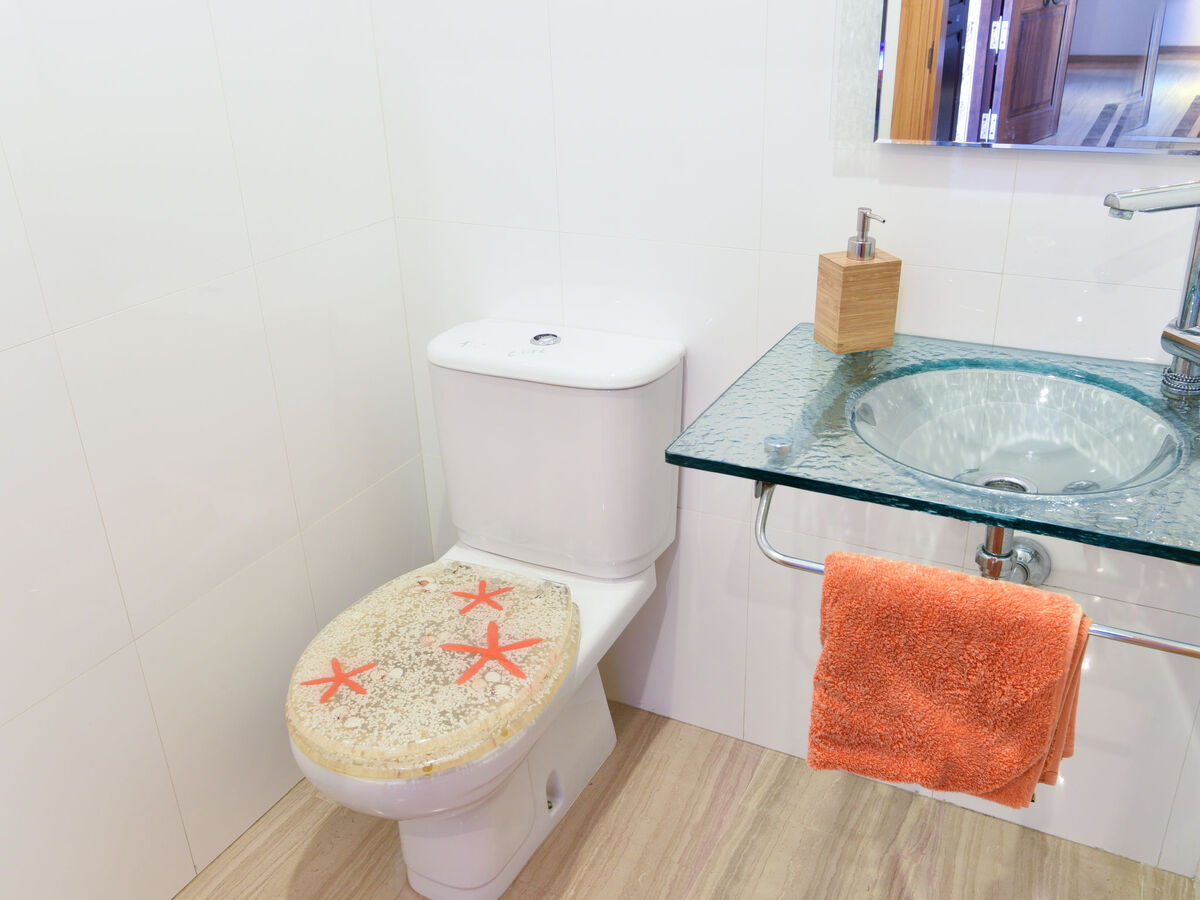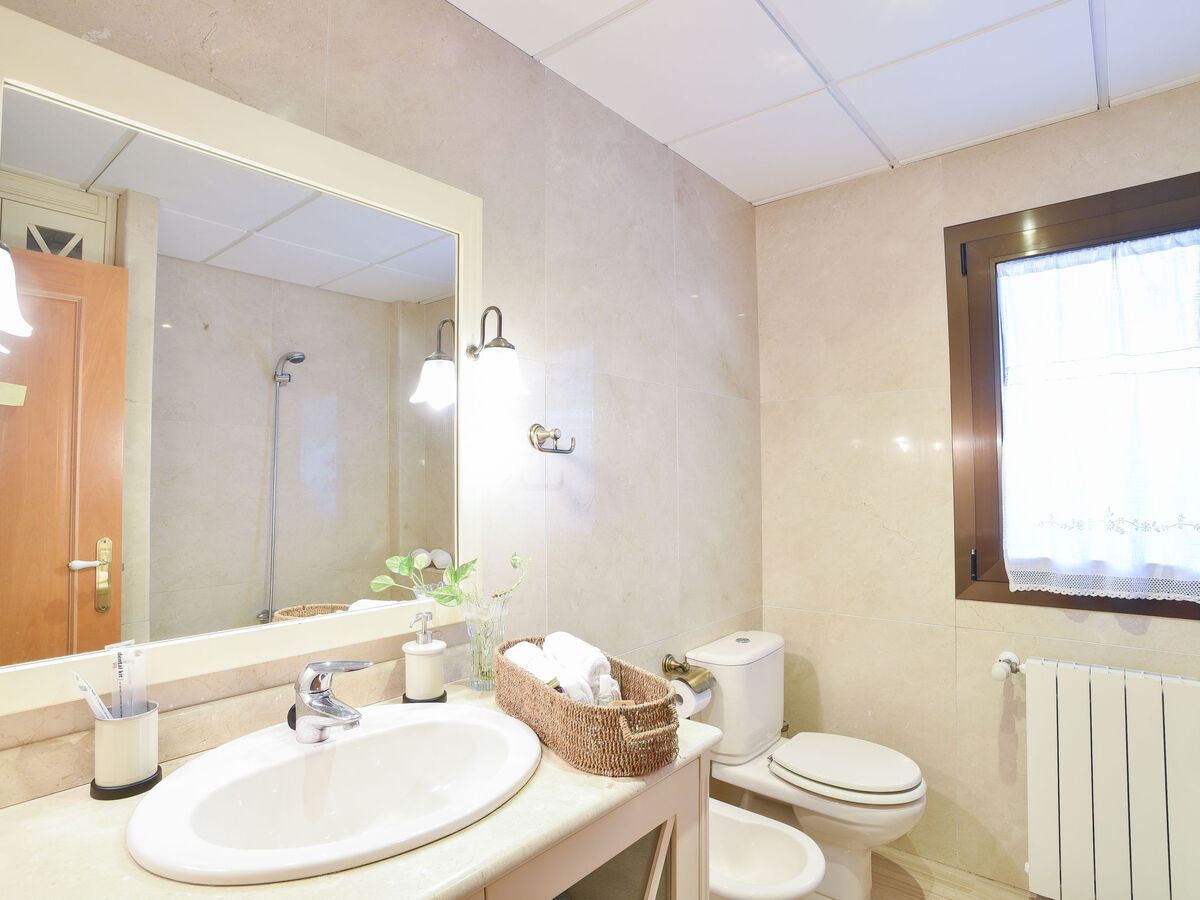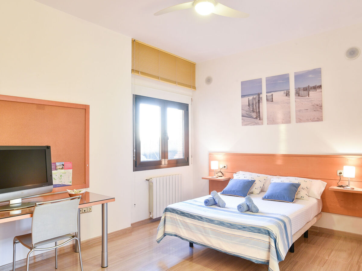 1 chambre avec 1 lit (135 cm), bain/douche/bidet/WC.