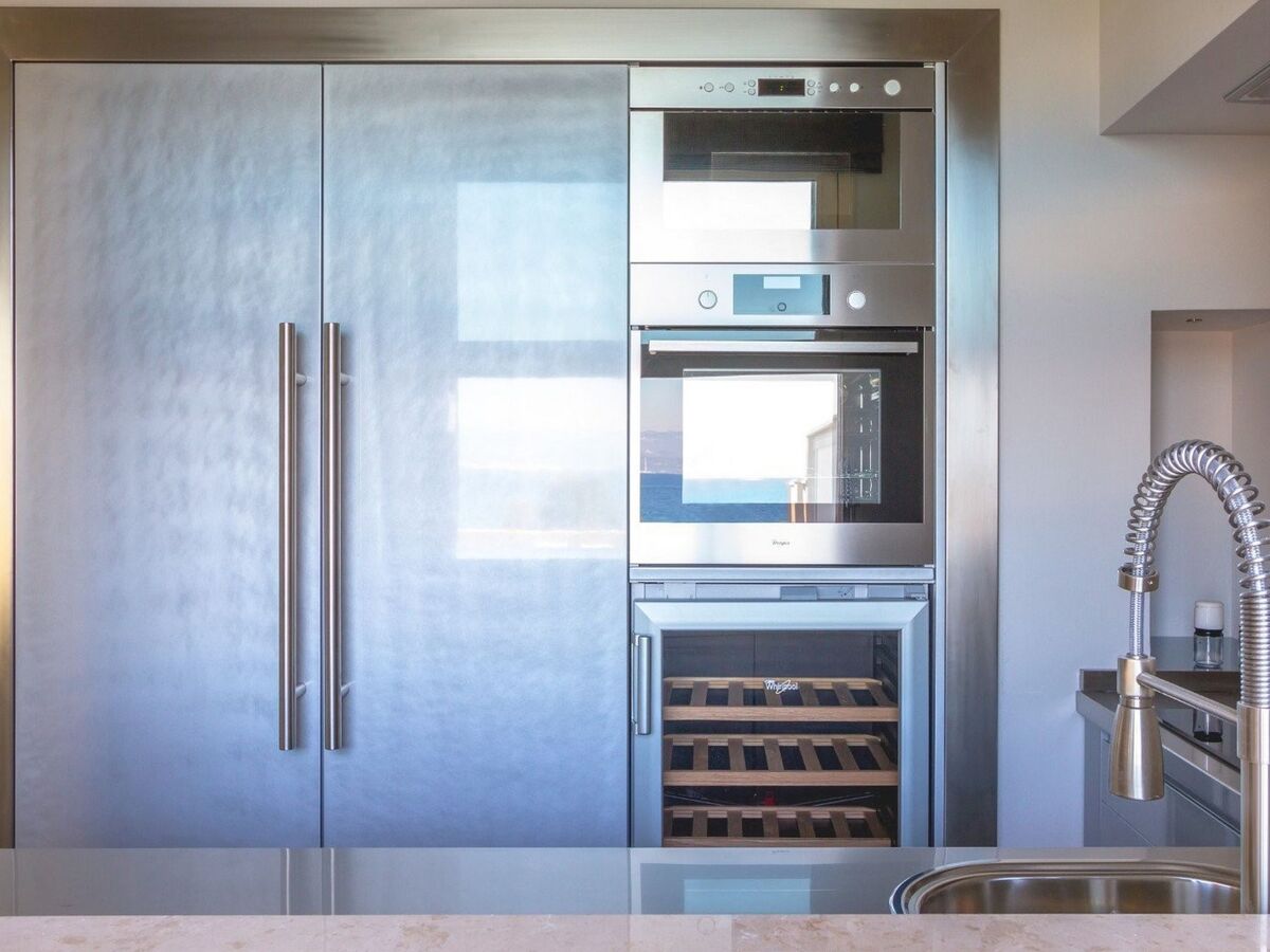 Cuisine ouverte (four, lave-vaisselle, 4 plaques à induction, grille-pain, bouilloire électrique, micro-ondes, congélateur, cafetière électrique).