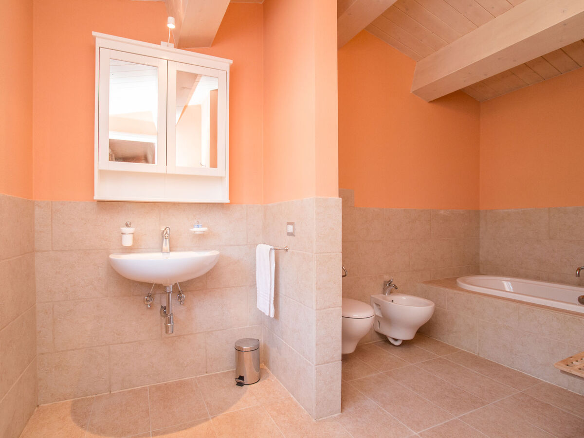 À l'étage supérieur: 1 grande chambre double avec bain/bidet/WC.