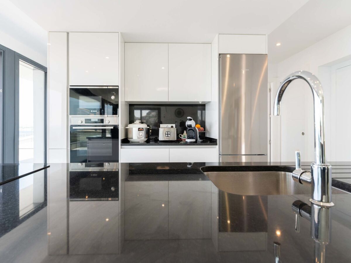 Grande cuisine ouverte (four, lave-vaisselle, 3 plaques à induction, grille-pain, bouilloire électrique, micro-ondes, congélateur, cafetière électrique, ilot de cuisine).
