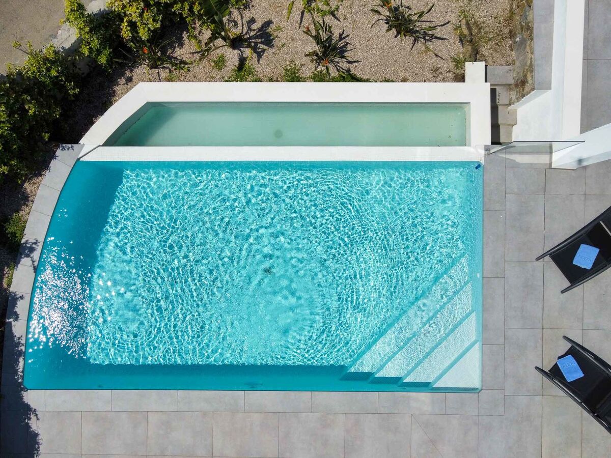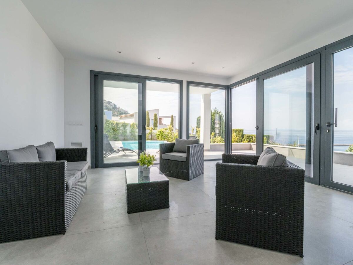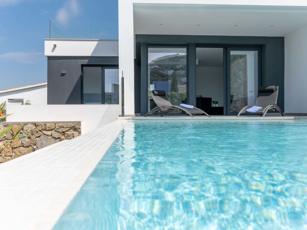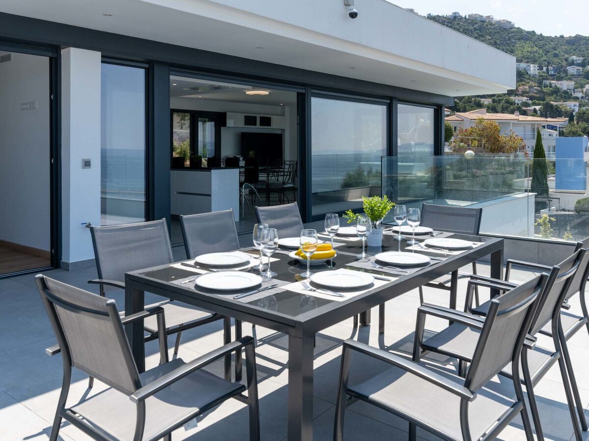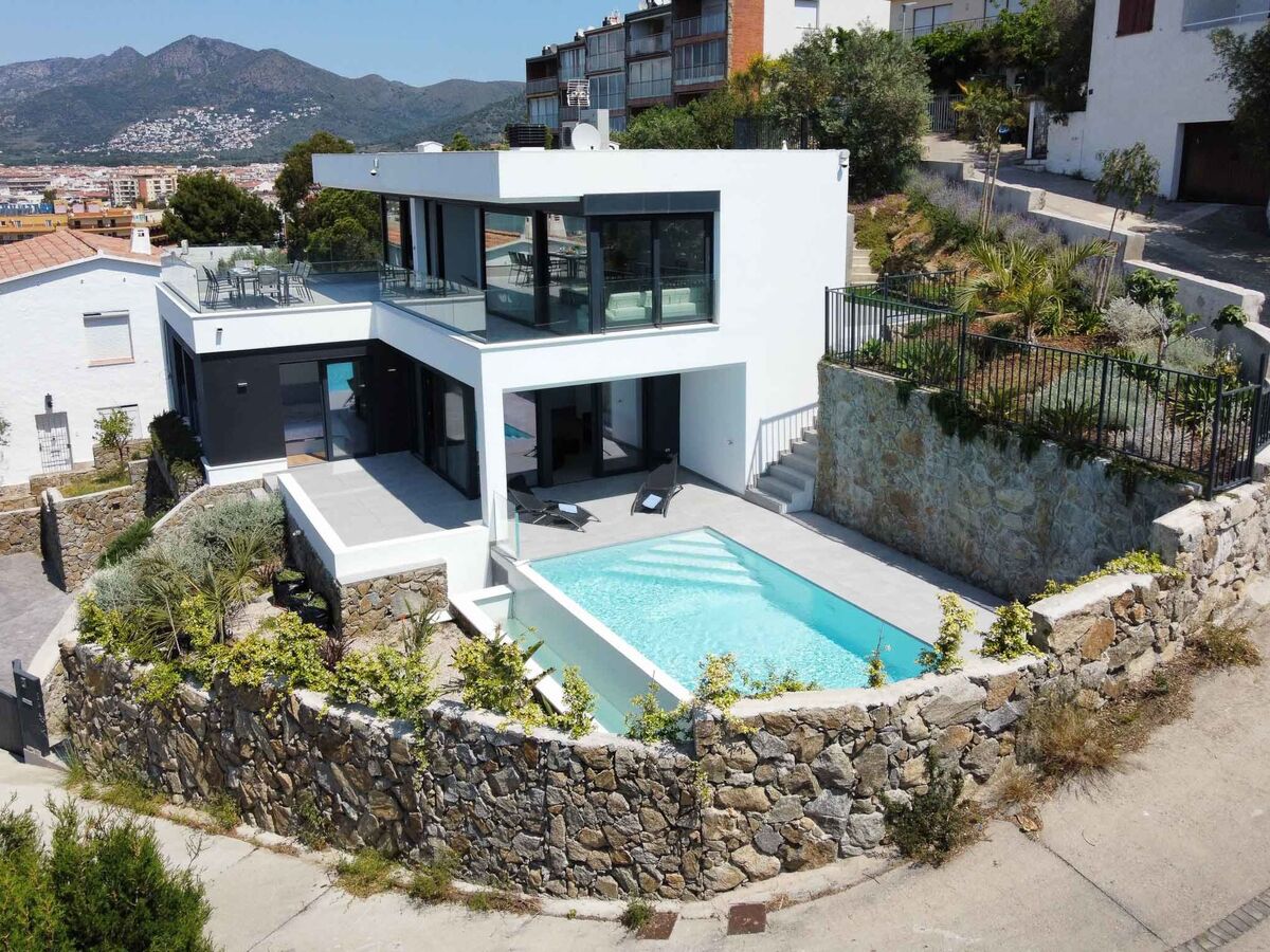 À 400 m du centre de Roses, situation tranquille, ensoleillée sur une colline, quartier résidentiel, à 200 m de la mer, à 500 m de la plage, orientée sud-ouest.