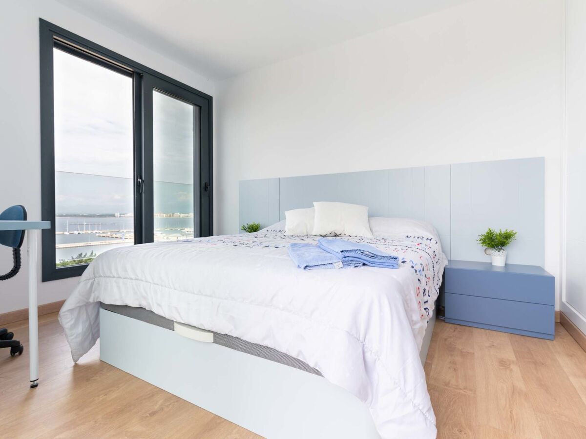 1 chambre avec 1 grand-lit (160 cm, longueur 200 cm), douche/WC, air-conditionné, chauffage à air chaud et volet roulant électrique.