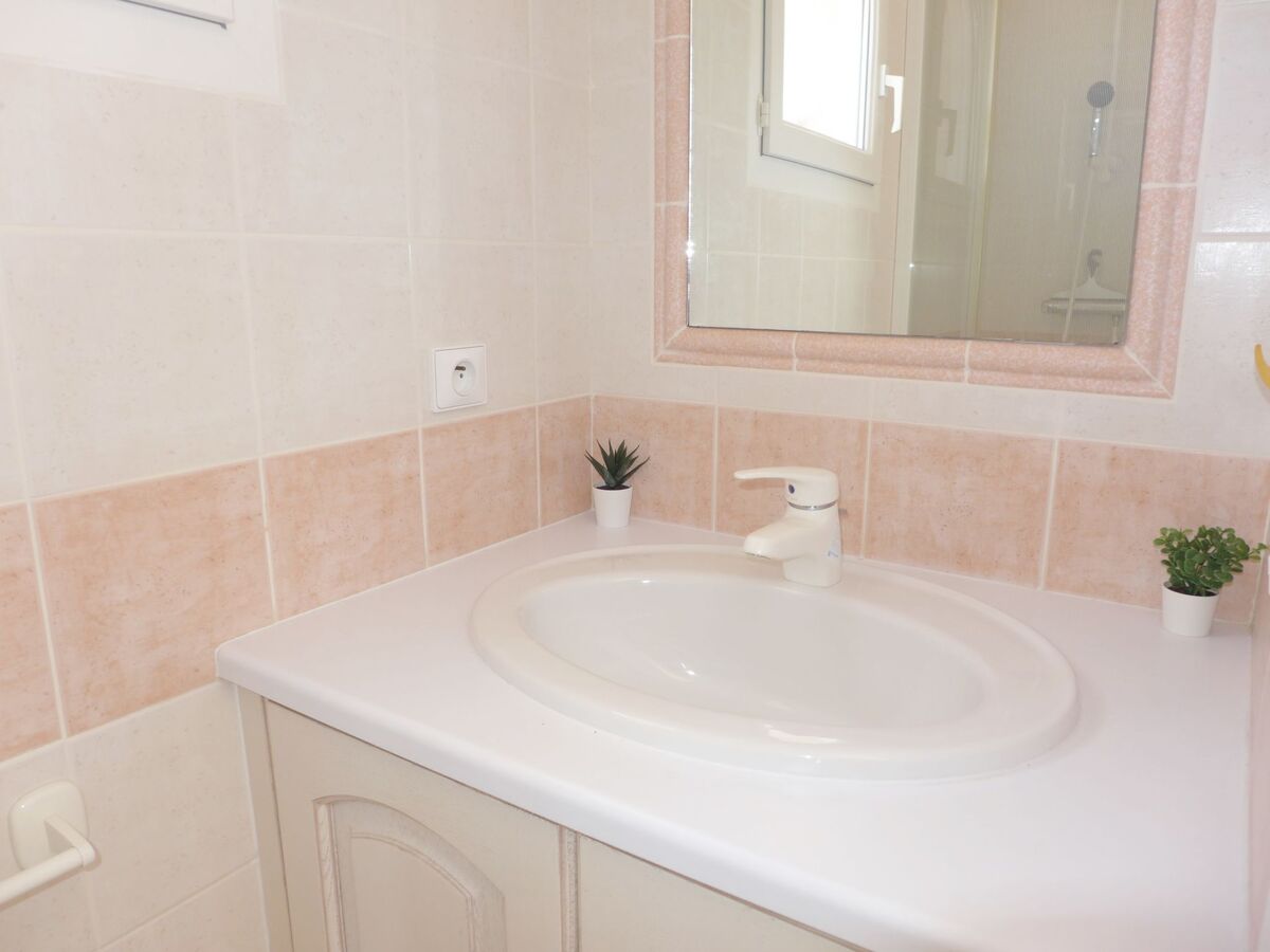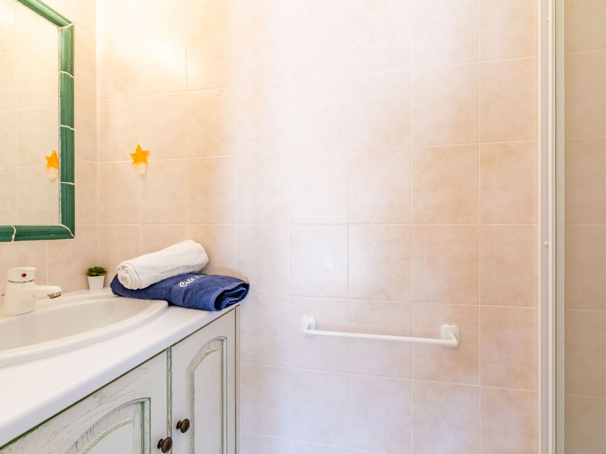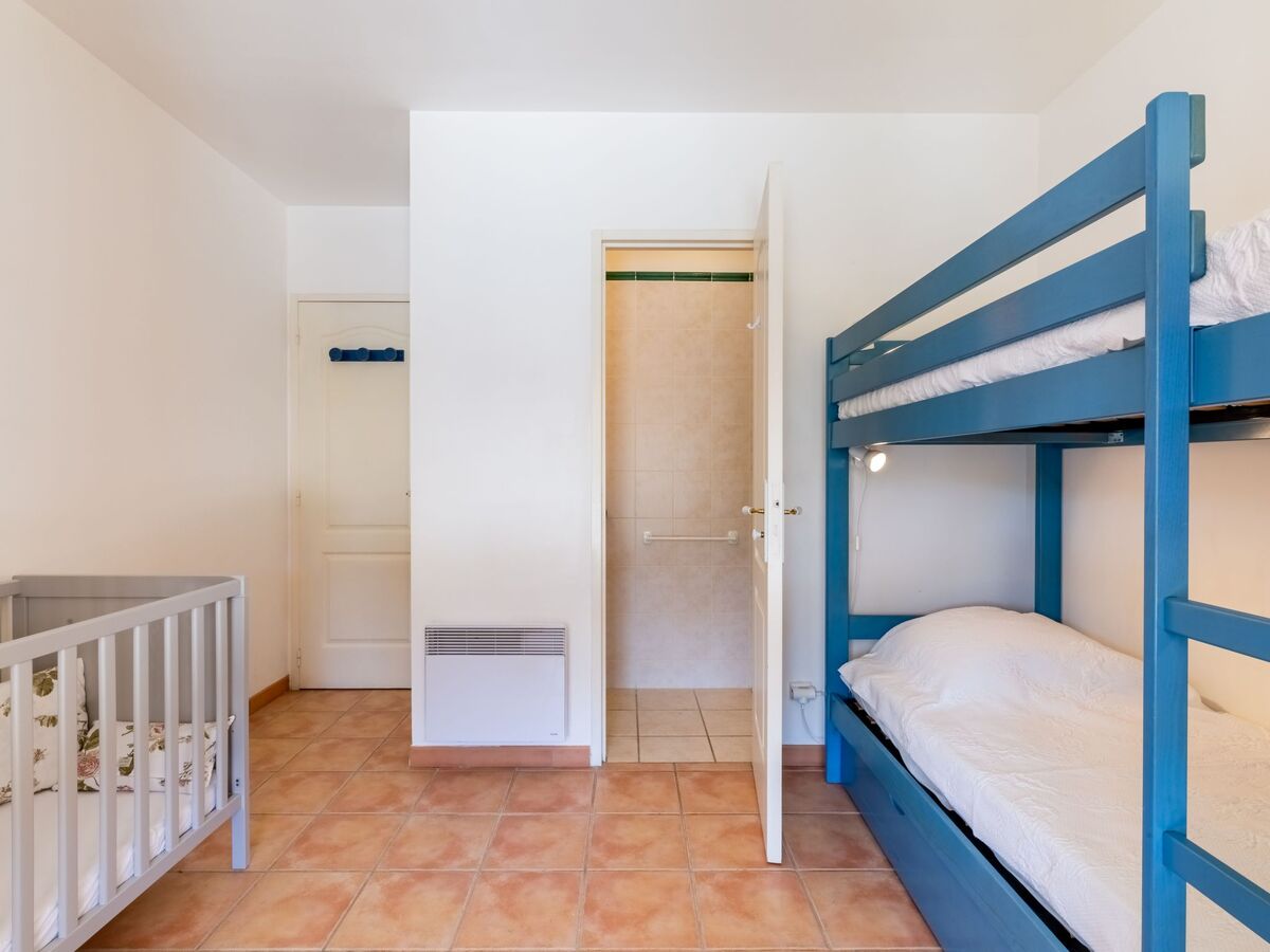 1 chambre d'enfants avec 1 x 2 lits superposés (80 cm, longueur 190 cm), lavabo et douche.
