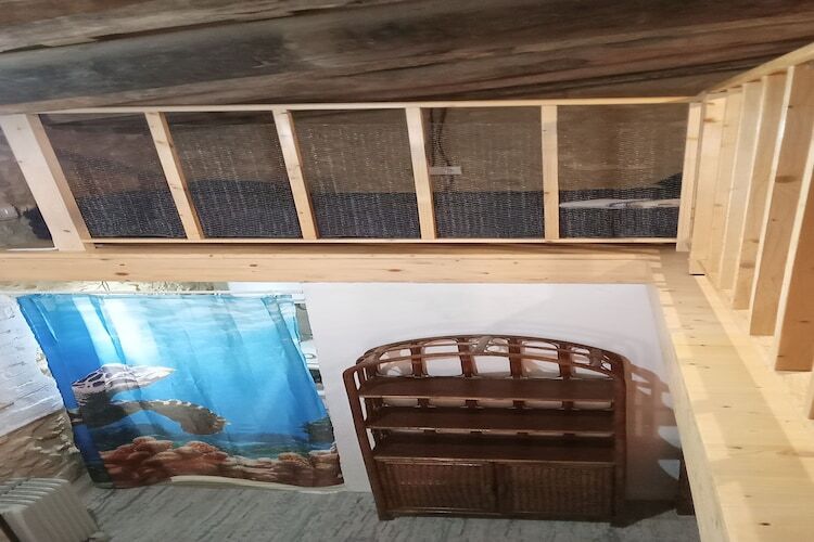 Rez-de-chaussée: (Entrée, Salle de séjour(TV, coin salon, équipements de jeux, chaise haute, jeux de société, jouet), cuisine ouverte(table, foyer, grille-pain, hotte, cafetière/percolateur(cups), four, micro ondes, combinaison réfrigérateur/congélateur, Mixeur à main), chambre(Canapé-lit simple(110 x 190 cm), lit double(135 x 190 cm), lit mezzanine 2-pers. (135 x 190 cm), lit bébé), salle de bains(douche, lavabo, WC, sèche-cheveux), buanderie (lave-linge , fer à repasser)) patio, jardin(privé, 120 m2), mobilier de jardin, barbecue, parking, hamac