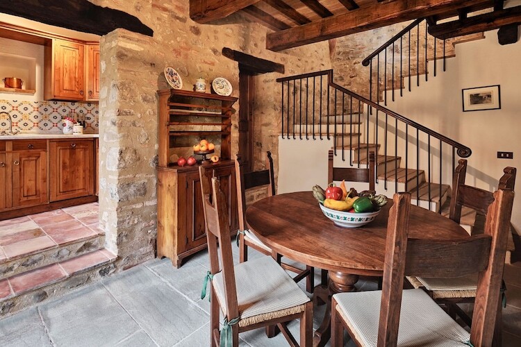 Casa Loggia avec une grande cheminée dans le salon s'étend sur 3 étages avec des escaliers. Il est confortable et intime tout en faisant partie d'un ancien Borgo ombrien datant de 1500 avec un total de 6 maisons.