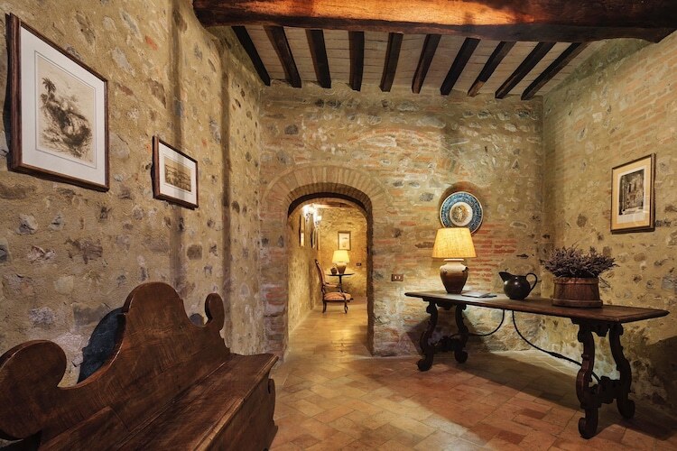 La maison tour avec une cheminée dans la salle à manger est confortable et intime bien qu'elle fasse partie d'un ancien Borgo ombrien datant de 1500 avec un total de 6 maisons.