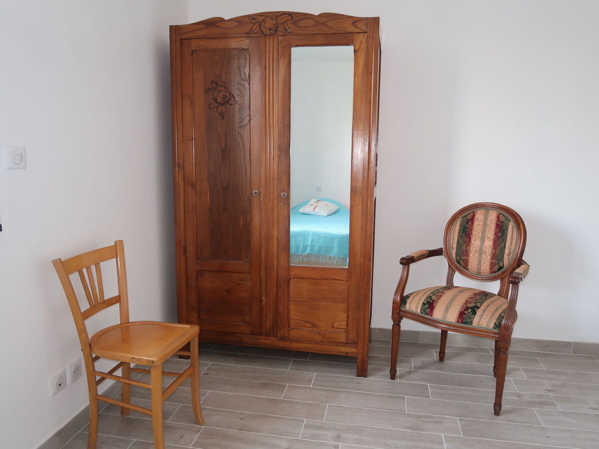 1 chambre avec 2 lits (80 cm, longueur 200 cm), salle de bains.