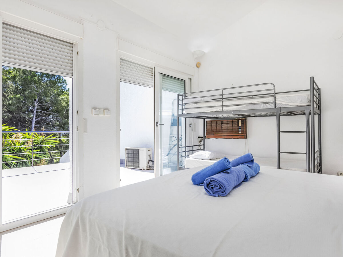 À l'étage supérieur: 2 chambres, chaque chambre avec: 1 grand-lit (135 cm, longueur 190 cm), Télévision numérique et air-conditionné.