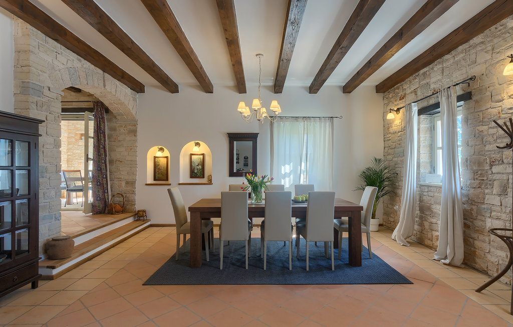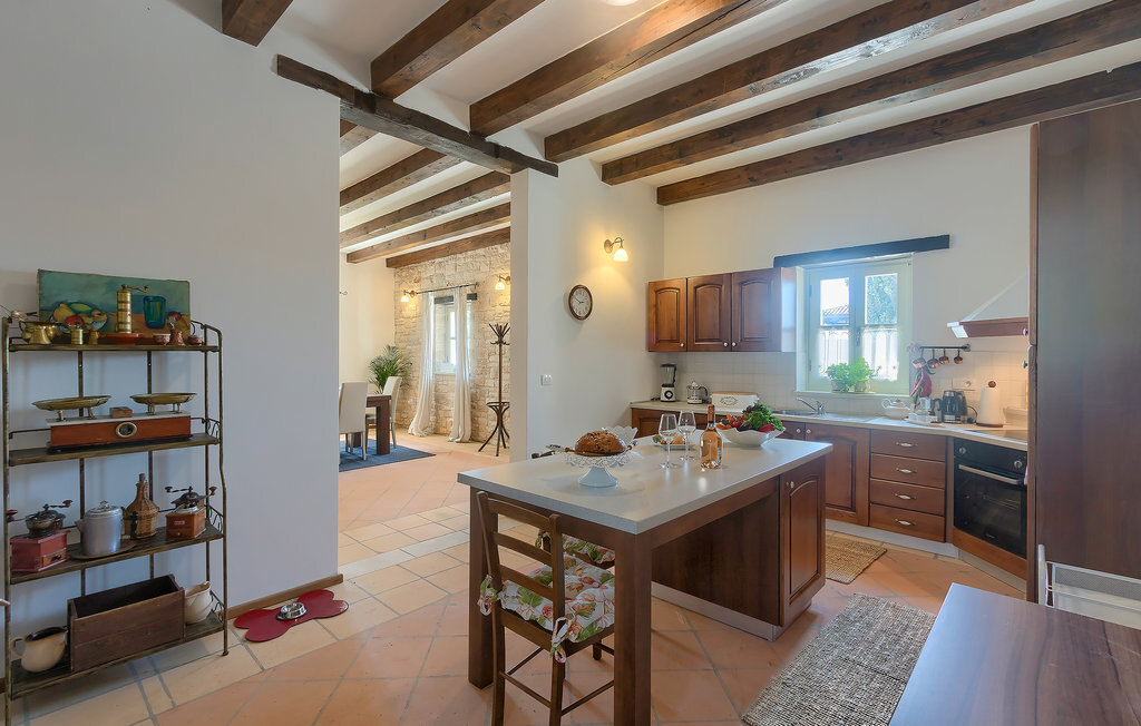 Venez avec votre famille élargie ou vos amis dans cette magnifique maison en pierre de style istrien. L'architecture rurale est accueillante et vous donne l'impression d'être dans un autre monde. Profitez de l'aménagement somptueux et laissez-vous aller. L'immense propriété offre beaucoup d'espace et chaque vacancier y trouvera rapidement sa place préférée. Détendez-vous au bord de la piscine à l'abri des regards ou rafraîchissez-vous dans celle-ci avant de prendre le soleil sur les chaises longues et de savourer une boisson fraîche. A l'ombre de la véranda, vous vous retrouverez pour des petits en-cas ou vous préparerez le soir un délicieux barbecue dans le grill traditionnel en pierre. La maison est aménagée pour les familles et offre un grand confort pour petits et grands.