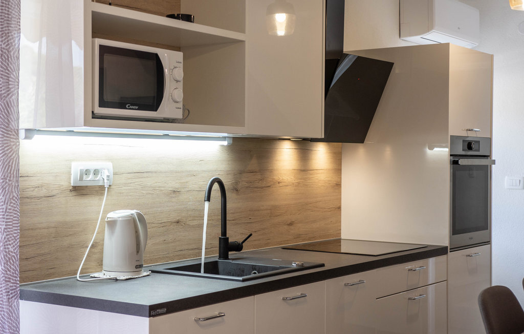 Vous pouvez utiliser le barbecue maçonné pour créer ensemble votre dîner, discuter de ce que vous avez vécu dans la cuisine ouverte ou déguster un risotto aux calamars ou du poisson fraîchement pêché dans l'un des innombrables restaurants de la ville.