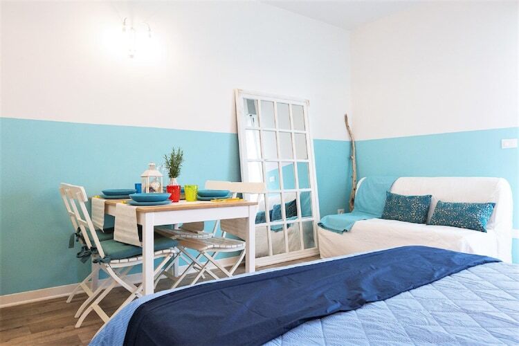 L'intérieur, conçu pour un quotidien pratique, propose un espace lumineux et ouvert combinant salon, coin repas et cuisine entièrement équipée. Que vous prépariez le petit-déjeuner avant une journée à la plage ou savouriez un dîner décontracté après une journée de découverte de la ville, l'agencement facilite la préparation des repas et vous permet de vous détendre confortablement. Le salon comprend deux canapés-lits doubles, pouvant accueillir jusqu'à quatre personnes. Une salle de bain moderne avec douche est à votre disposition, offrant tout le confort nécessaire pour un séjour agréable. Profitez de votre terrasse privée pour respirer l'air marin et savourer un moment de calme avec votre café du matin ou un verre en soirée.