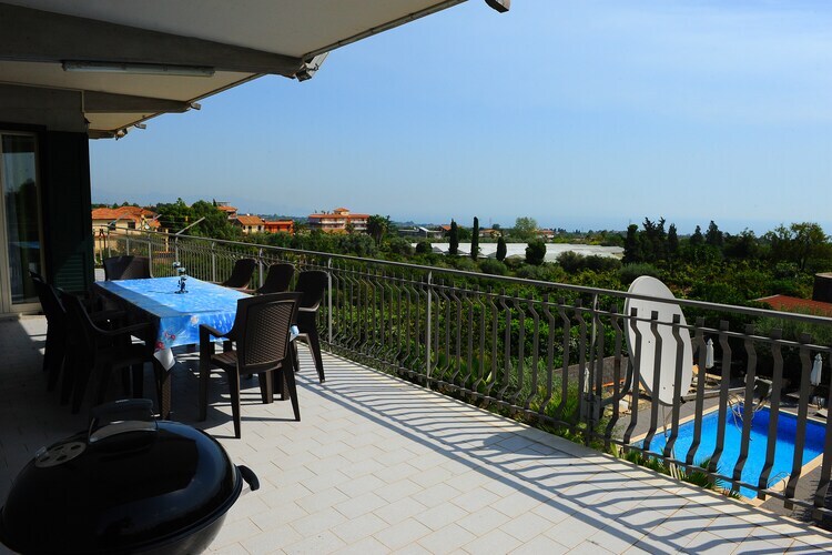 Au 2ème étage: (cuisine ouverte(foyer(6 foyers), plaque de cuisson, hotte, machine à café expresso, four, micro ondes, combinaison réfrigérateur/congélateur, lave-linge ), salle à manger-salon(table), chambre avec salle de bains(lit double, douche, lavabo, WC, bidet, climatisation), chambre avec salle de bains(lit double, baignoire-douche, lavabo, WC, bidet, climatisation), Lecteur DVD, radio, climatisation, terrasse, table à repasser, fer à repasser) jardin, mobilier de jardin, barbecue, parking, piscine(partagé avec d'autres clients, 10 x 5 m.), plancha