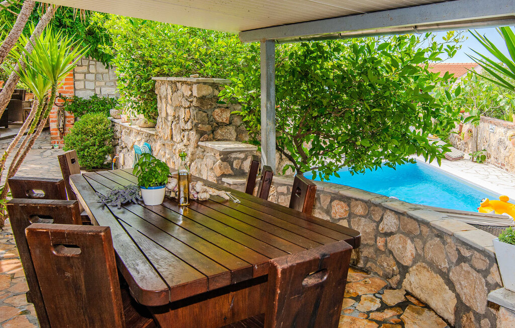 Maison de vacances confortable dans un jardin planté d'essences méditerranéennes. Vous habitez à Maslenica. La maison se compose de deux unités d'habitation séparées et ne possède que des escaliers extérieurs. Dans le jardin, un lit à baldaquin ainsi qu'une tonnelle sont à votre disposition pour vous détendre. La piscine permet de se rafraîchir pendant les chauds mois d'été. Le propriétaire habite dans une petite maison sur la propriété, mais il est séparé de vous par un mur et une entrée séparée, de sorte que votre vie privée ne soit pas perturbée. Visitez le parc national de Paklenica tout proche ou tentez un saut à l'élastique depuis le pont de Maslenica.