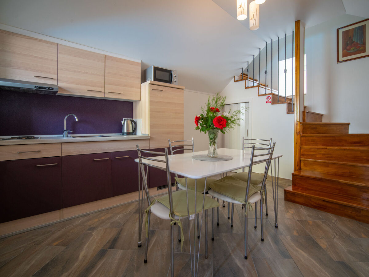 L'autre appartement: salle à manger, cuisine ouverte au rez-de-chaussée, séjour, 2 chambres à l'étage.