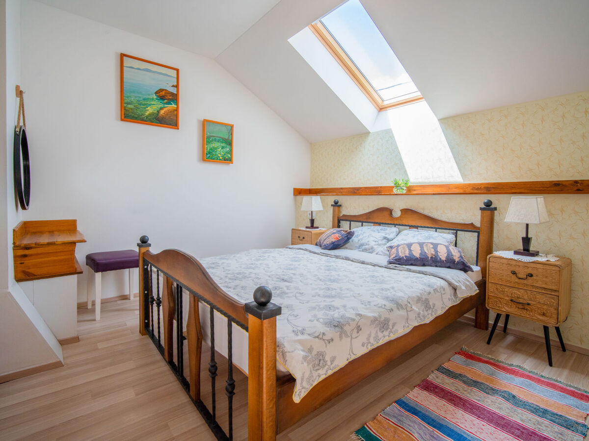 1 chambre avec fenêtre sous le toit avec 1 grand-lit (160 cm, longueur 200 cm).