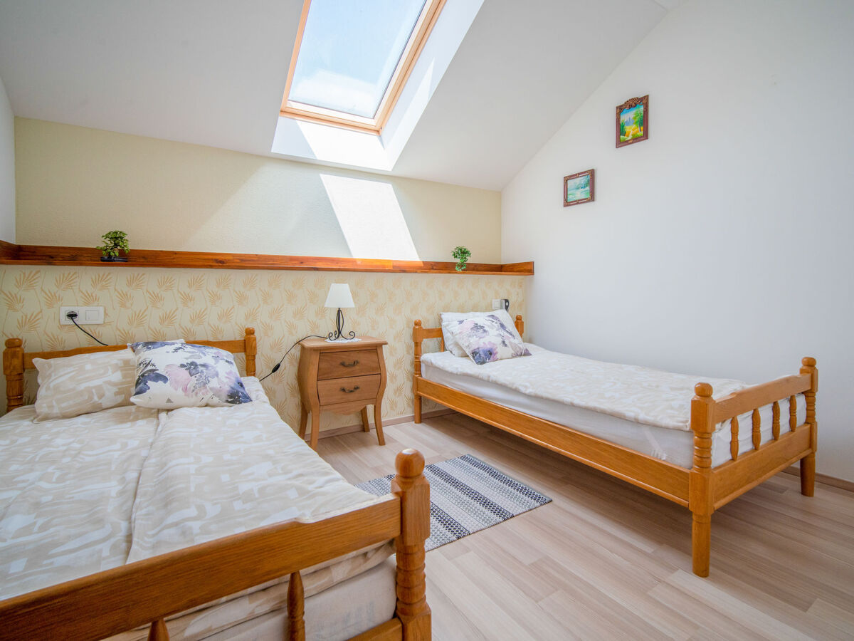 1 chambre avec fenêtre sous le toit avec 2 lits (90 cm, longueur 200 cm).