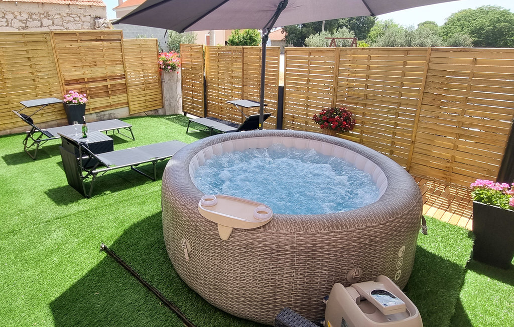 Maison de vacances moderne en Dalmatie avec salle de fitness et jacuzzi.