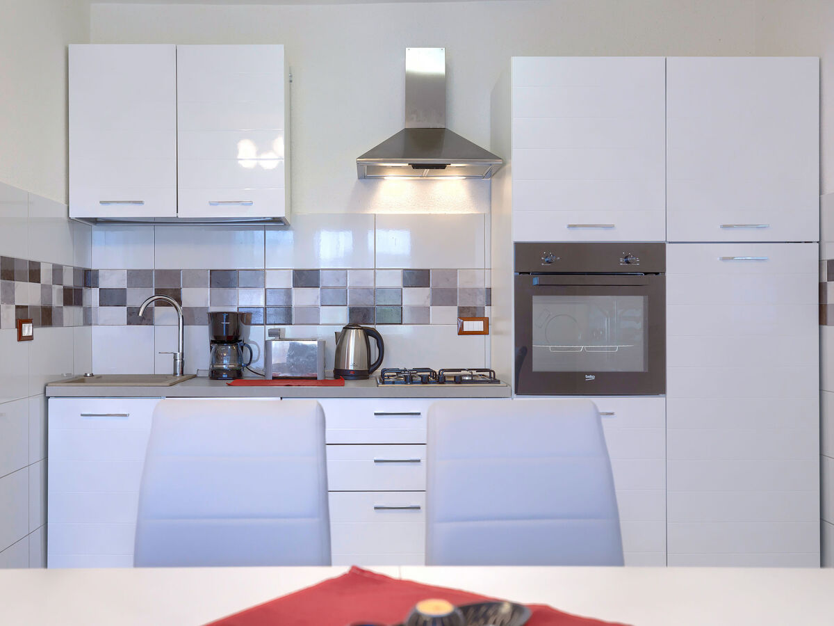 Cuisine ouverte (1 plaque de cuisson, four, lave-vaisselle, 3 feux, micro-ondes, congélateur, cafetière électrique).