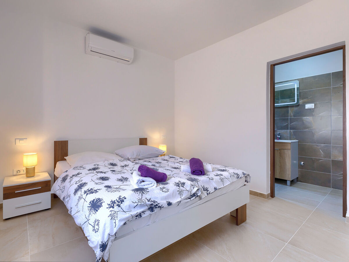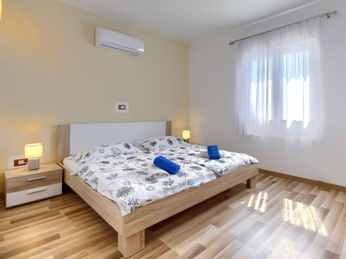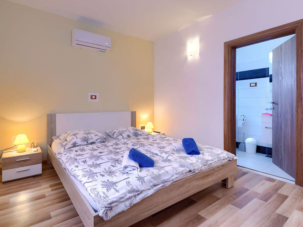 1 chambre avec 1 grand-lit (180 cm, longueur 200 cm), TV (satellite) (écran plat), air-conditionné.