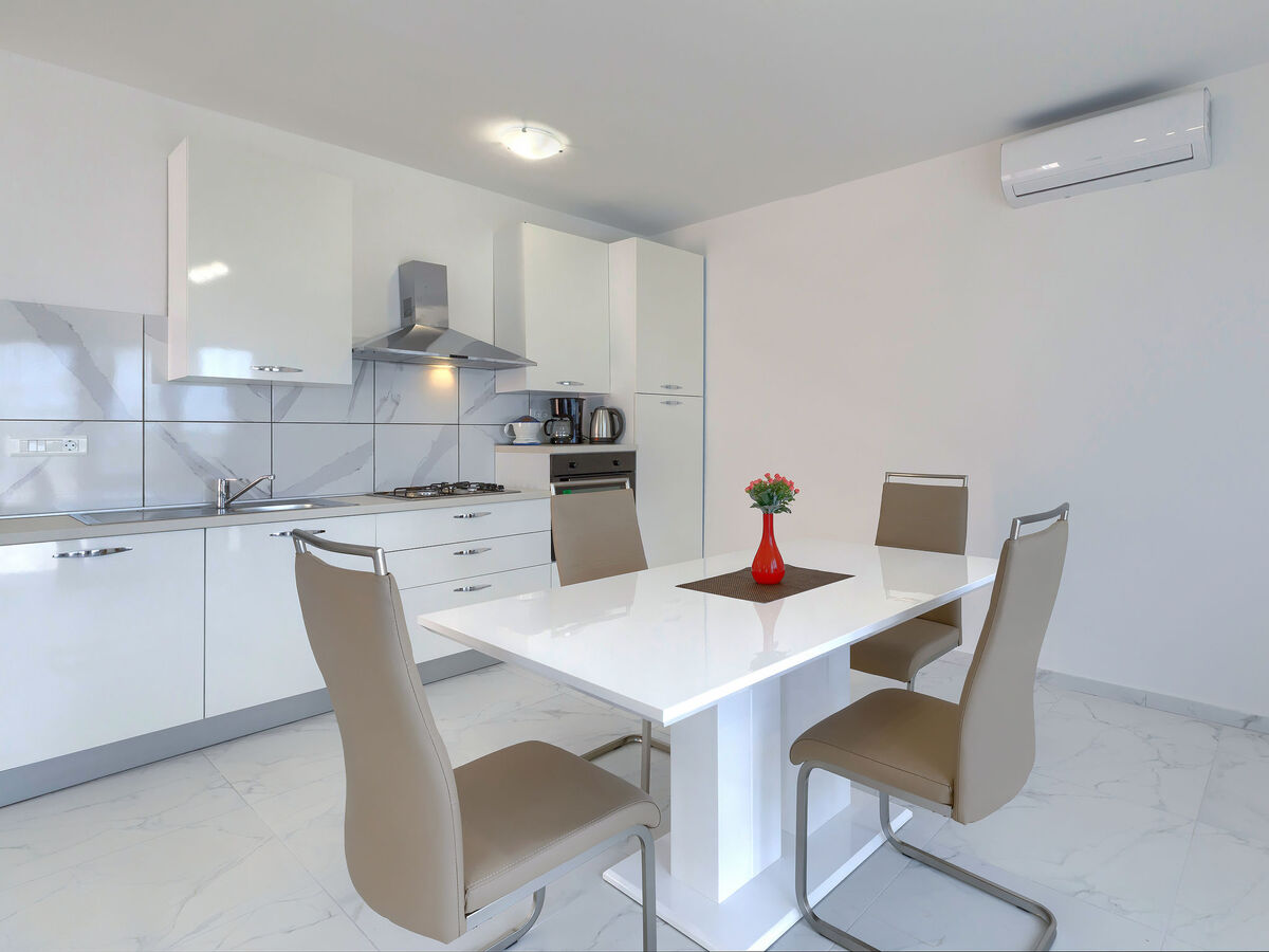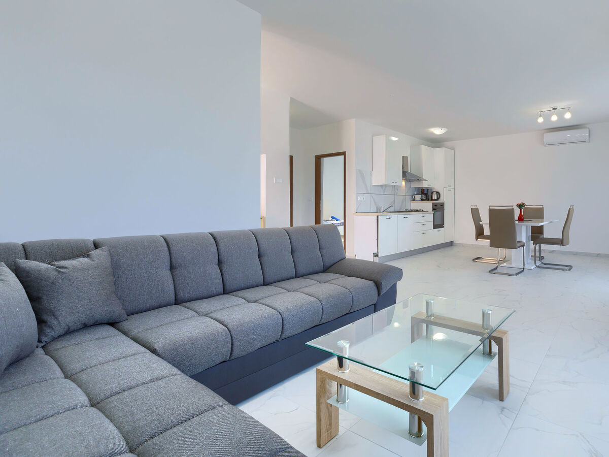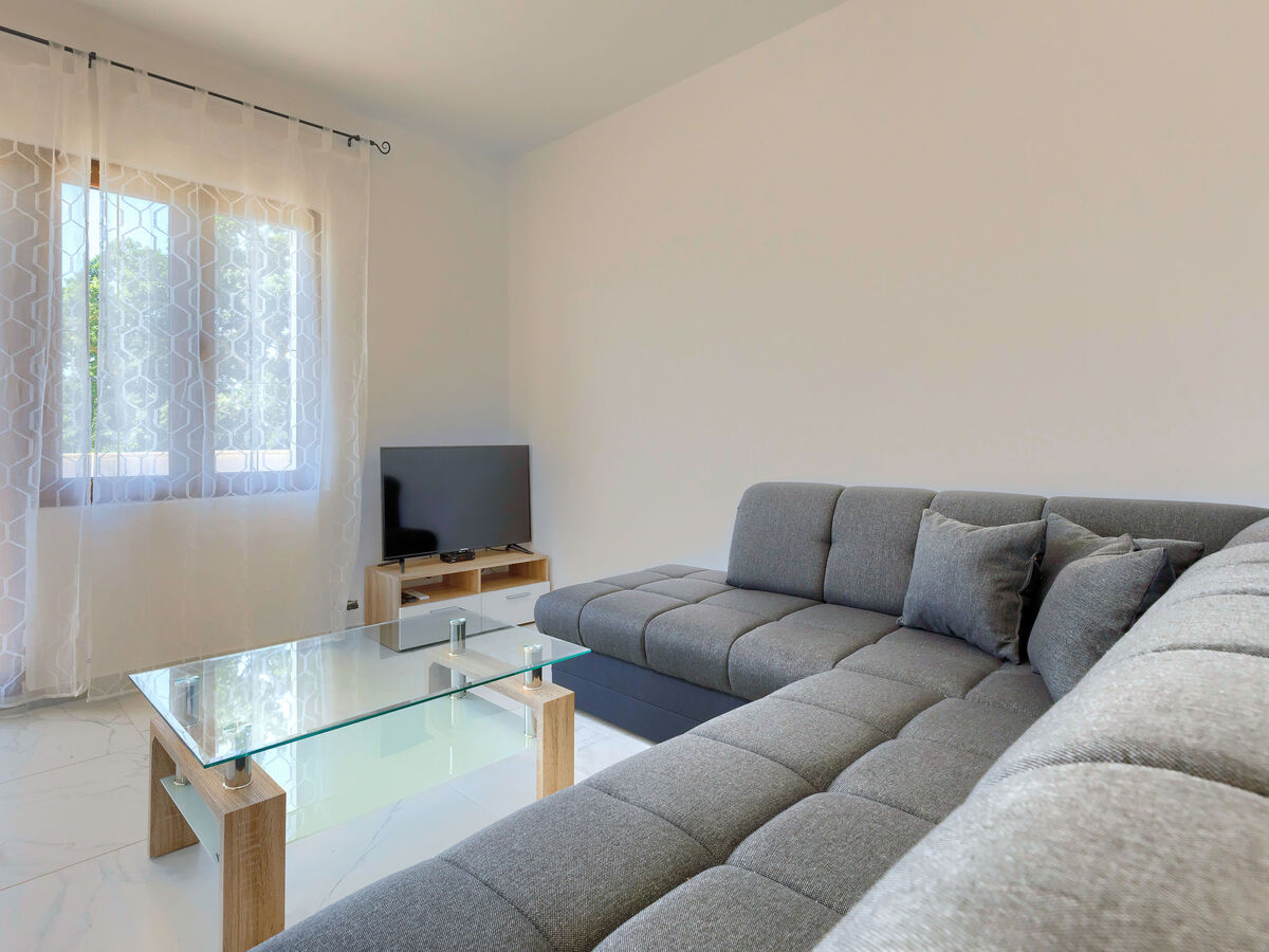 Séjour/salle à manger avec TV (satellite) (écran plat), air-conditionné.
