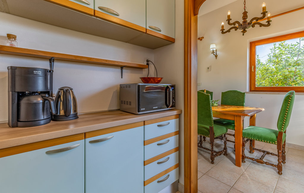 En seulement 5 minutes à pied, vous atteignez la plage de galets et de rochers. Plongez dans la mer et profitez de l'eau bleu azur de l'Adriatique. Vous y trouverez un petit coin tranquille au soleil ou à l'ombre des pins. Nous vous recommandons également de faire des excursions plus importantes dans le parc naturel de Kamenjak tout proche ou dans la belle ville de Pula. Ici, vous pourrez profiter des nombreuses possibilités de shopping et de la riche gastronomie.