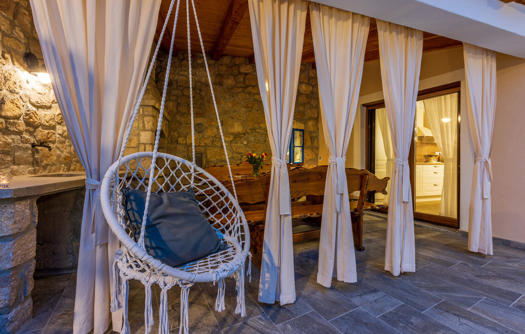 Depuis cette superbe maison de vacances construite dans le style croate classique et aménagée de façon moderne avec piscine, terrasse et balcon, vous pouvez observer la mer tout en savourant votre café du matin. Vous passerez les douces soirées d'été en Croatie autour du barbecue maçonné sur la terrasse couverte et vous vous rafraîchirez dans la piscine à la chaleur de midi. Ici, tous les désirs sont comblés.