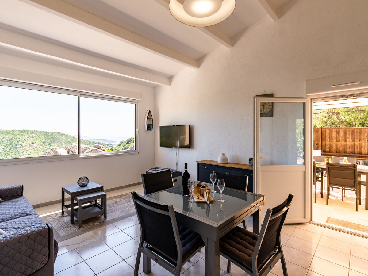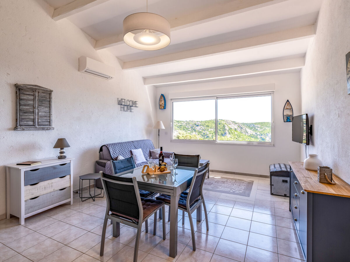 Mansardée, aménagement confortable: séjour/salle à manger avec 1 divan-lit double (140 cm, longueur 190 cm).
