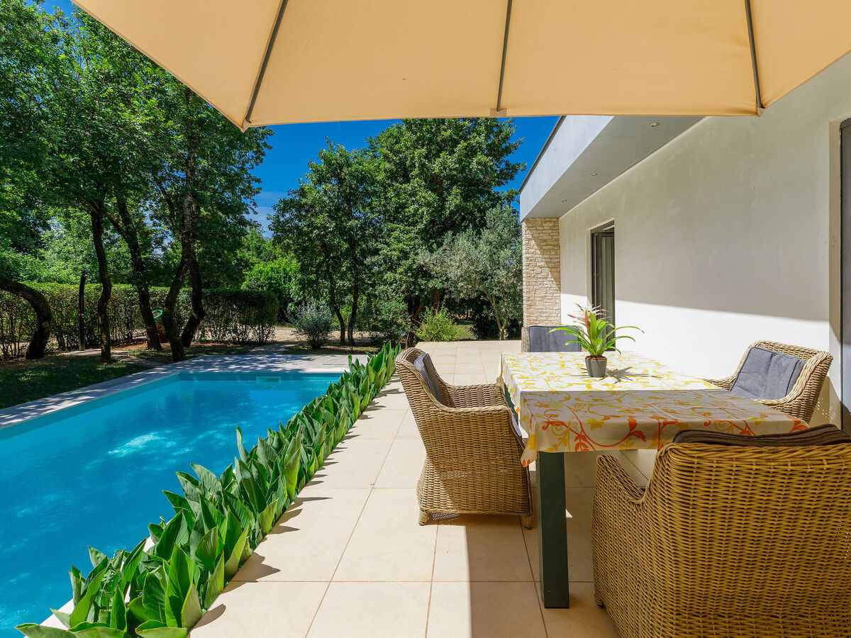 A usage privé: terrain 1'700 m2 avec arbres, piscine rectangulaire (7 x 3 m, profondeur 140 cm, disponibilité saisonnière: 01.Mai.