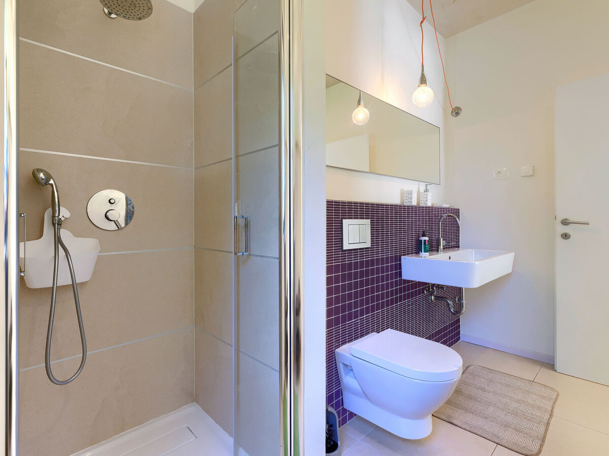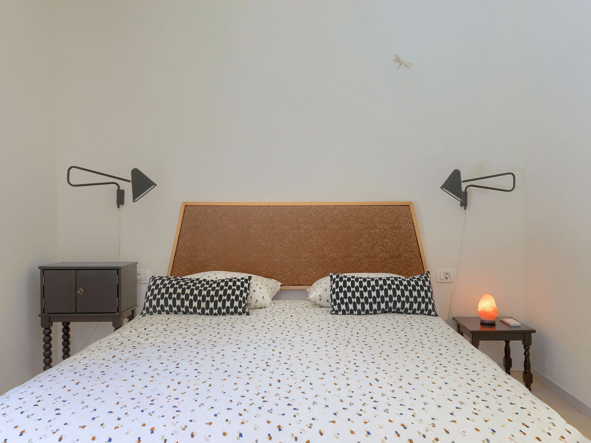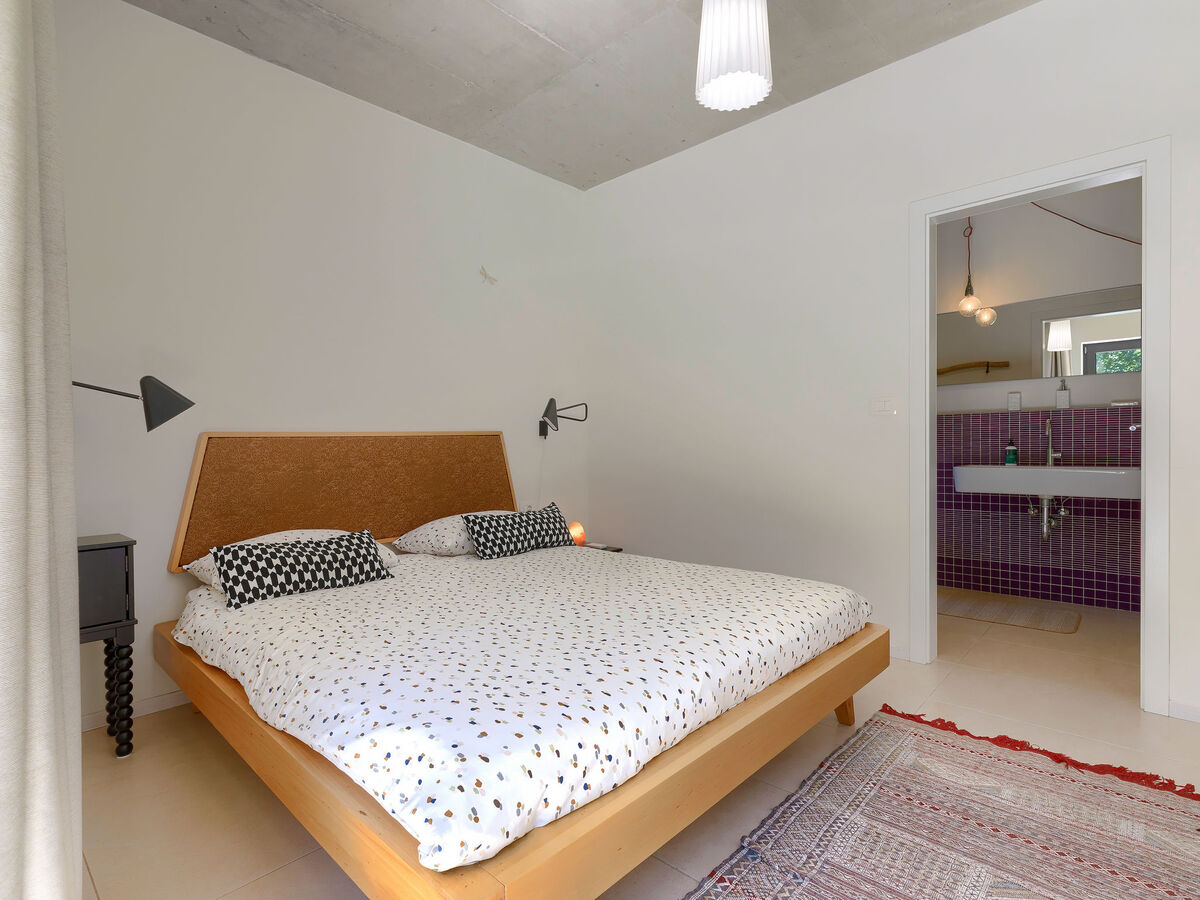 1 chambre avec 1 grand-lit (180 cm, longueur 200 cm), douche/WC et air-conditionné.
