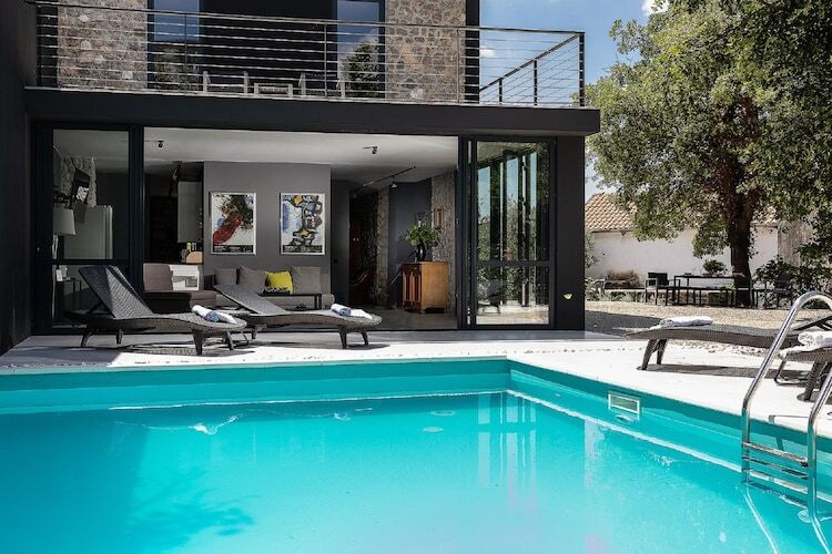 Rez-de-chaussée: (Salle de séjour(canapé-lit double, TV, coin salon), cuisine/salle à manger(foyer, hotte, four, micro ondes, lave-vaisselle , combinaison réfrigérateur/congélateur, lavabo), salle de bains(lavabo, WC, bidet, lave-linge )) Au 1er étage: (chambre(lit double), chambre(lit simple, lit double), salle de bains(baignoire-douche, lavabo, WC, bidet), terrasse) grill, douche(extérieur), patio, jardin, mobilier de jardin, piscine(privé, ouvert de Mai jusqu'à (inclus) Sept)