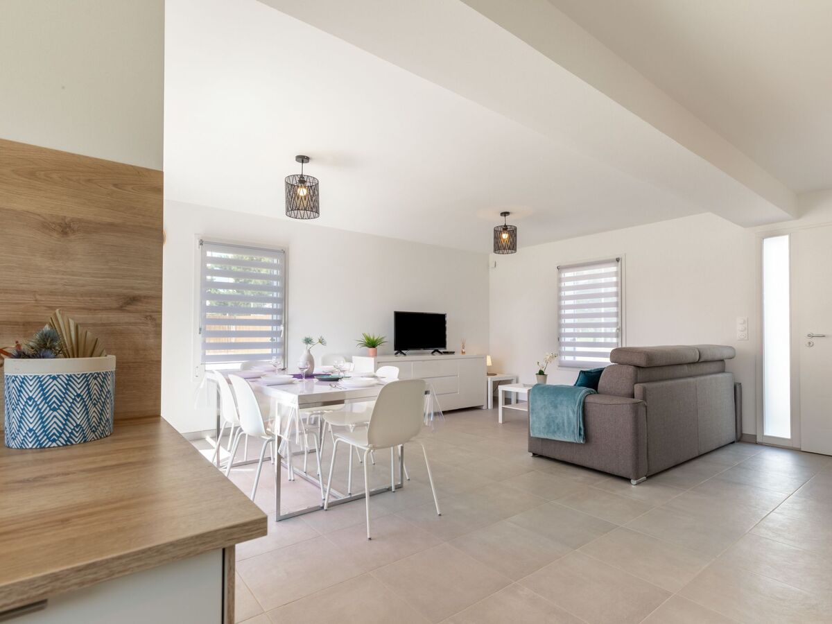 Aménagement moderne: séjour/salle à manger avec TV (écran plat).