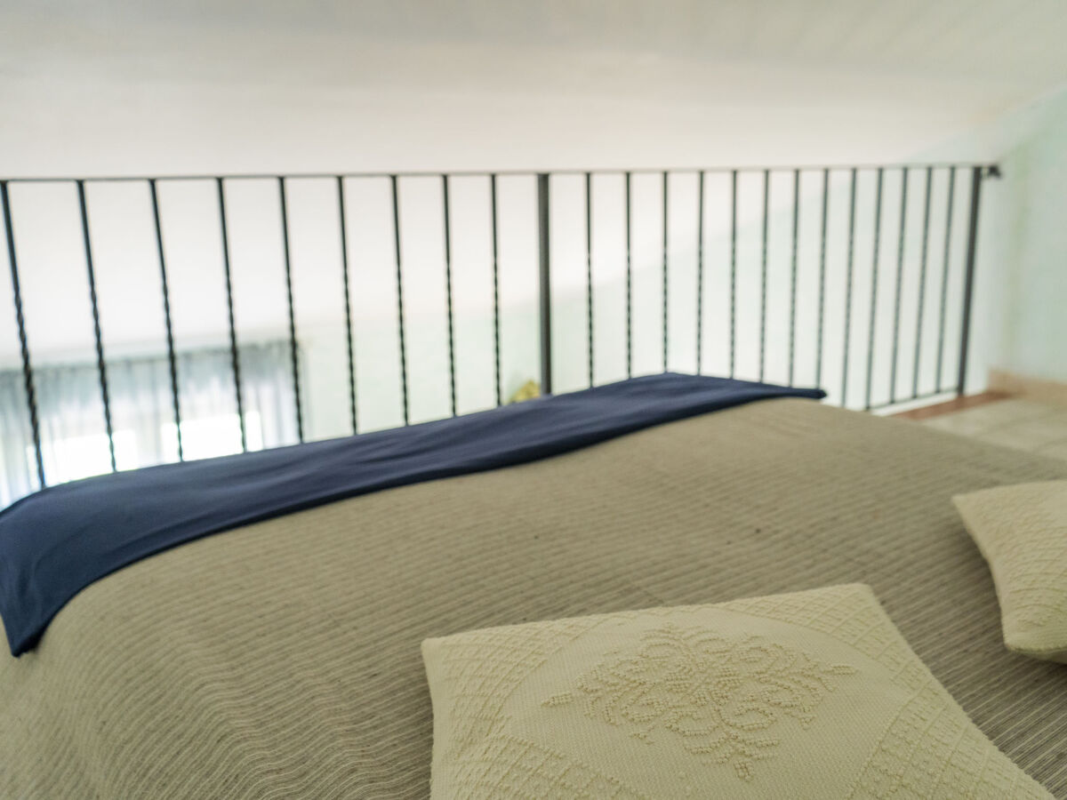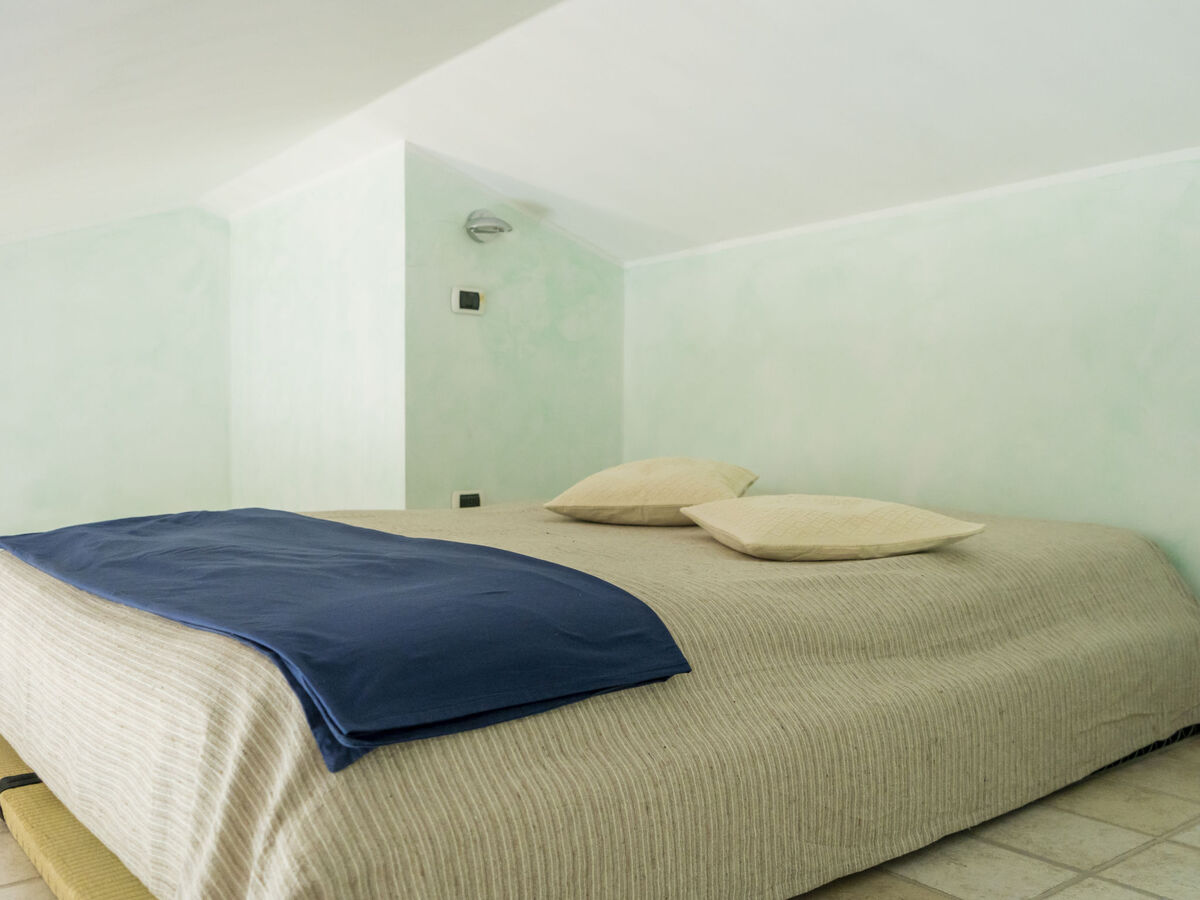 1 chambre, mansardée sur 2 niveaux avec 1 grand-lit (longueur 120 cm), 1 lit double (longueur 140 cm), douche/bidet/WC.