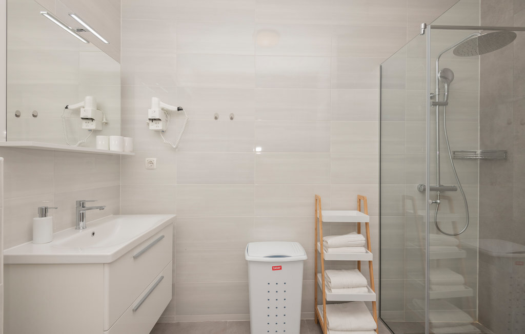 Elle se compose d'une cuisine, d'une salle à manger et de deux chambres, chacune avec sa propre salle de bain et des toilettes supplémentaires.