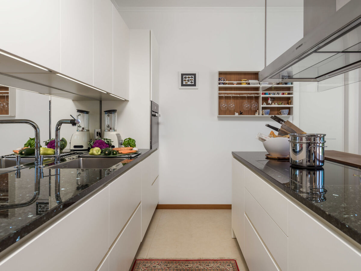 Cuisine ouverte (four, lave-vaisselle, 6 plaques à induction, grille-pain, bouilloire électrique, congélateur, cafetière électrique).